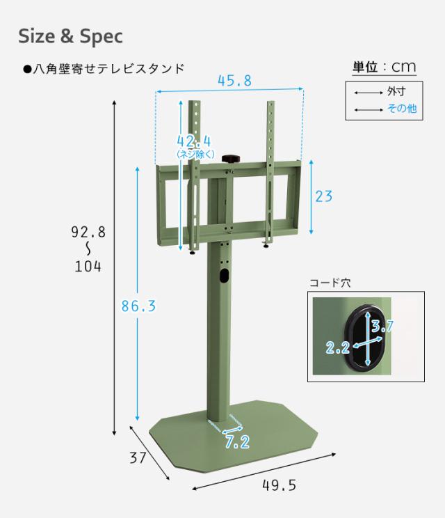 八角テレビスタンドは美しいフォルムが特徴の八角壁寄せテレビスタンド!