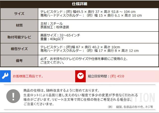 【商品サイズ】テレビスタンド:W49.5xD37xH92.8-104cm