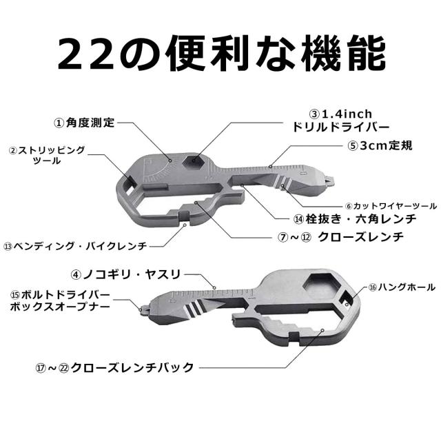| キーツール マルチツール キャンプ アウトドア キーホルダー ボックスカッター ダンボールカッター カッター 栓抜き ボトルオープナー ワイヤーカッター ノコギリ ヤスリ ドライバー 定規 角度定規 ストリッピングツール 六角レンチ ベンディング バイクレンチ クローズレンチ バック ドリルドライバー |