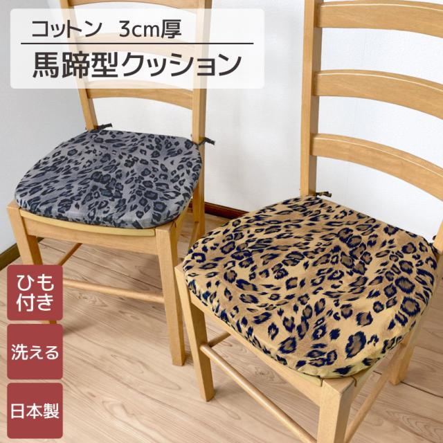 馬蹄型 ウレタンクッション パンサー 3cm厚 食卓テーブル椅子に 日本製 国内縫製 ひも付き カバーリング式 洗える レオパード 椅子クッション チェアークッション シートクッション 車 コットン 春 夏 軽量 軽い 豹柄 アニマル柄 かわいい さらさら アウトレット