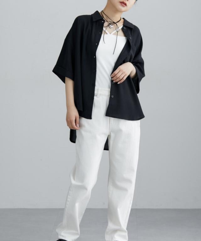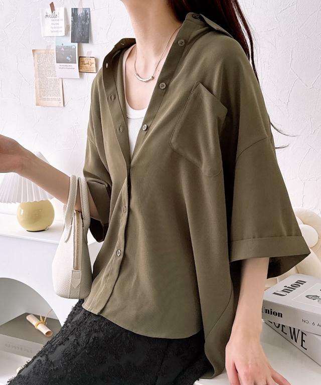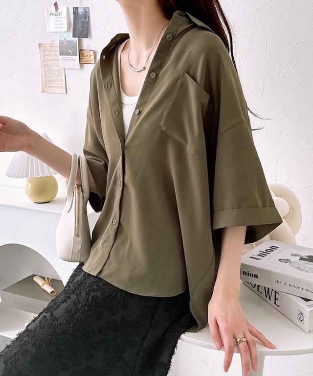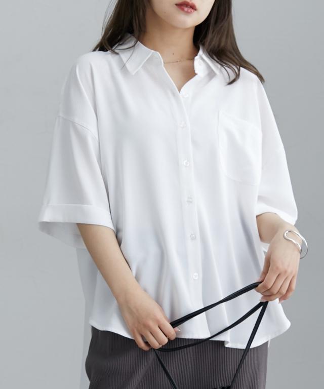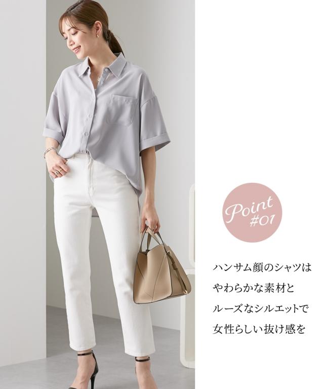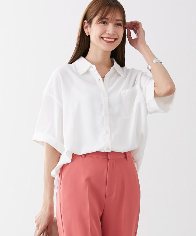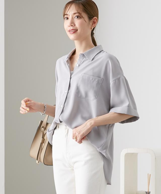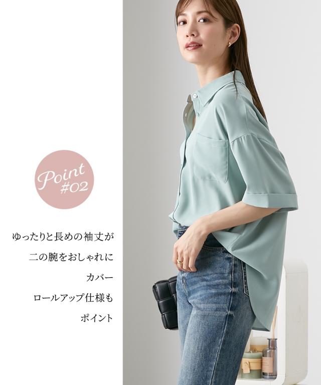 [keyword] レディースファッション 標準サイズ 普通サイズ ロング丈 おしゃれ 長い 半袖 五分袖 丸首 クルーネック 洗濯機洗いOK 洗濯 無地 無地調 柄 かわいい きれいめ 通勤 ビジネス 着回し オフィスに最適 オフィス 仕事 [comment] ハンサム顔のシャツは、やわらかな素材とルーズなシルエットで女性らしい抜け感をプラス。ゆったりと長めの袖丈が二の腕をおしゃれにカバーしてくれます。ロールアップ仕様もポイント!きれいめにもカジュアルにも着られる上品な落ち感のある素材です。