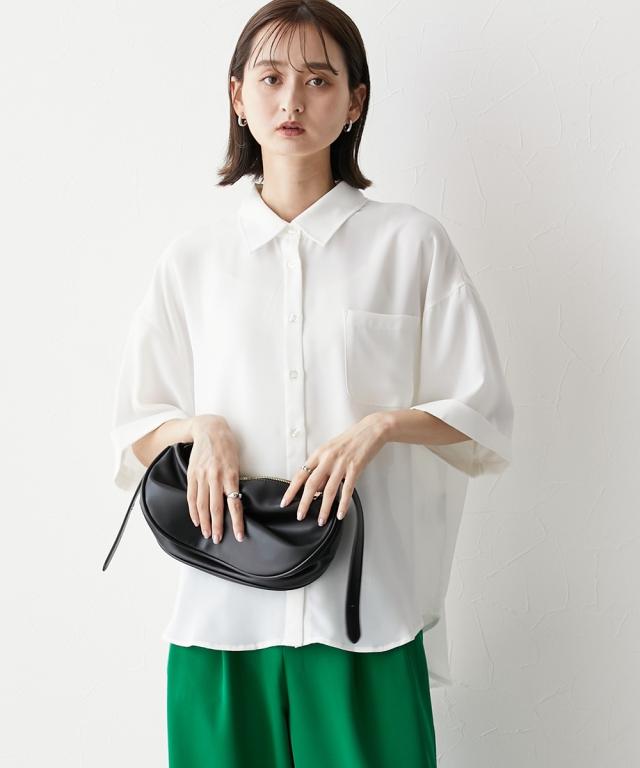 レディース とろみ素材 胸ポケットオープンカラ— シャツ LL