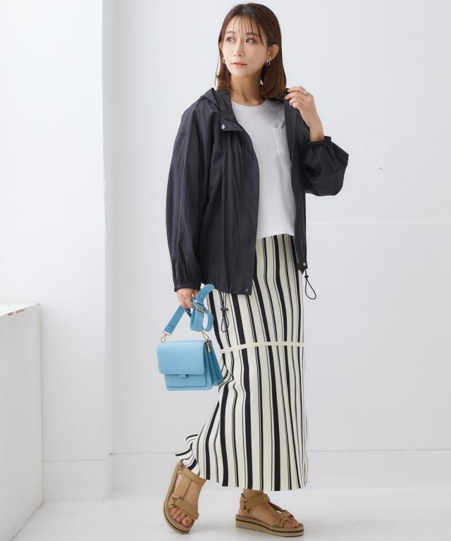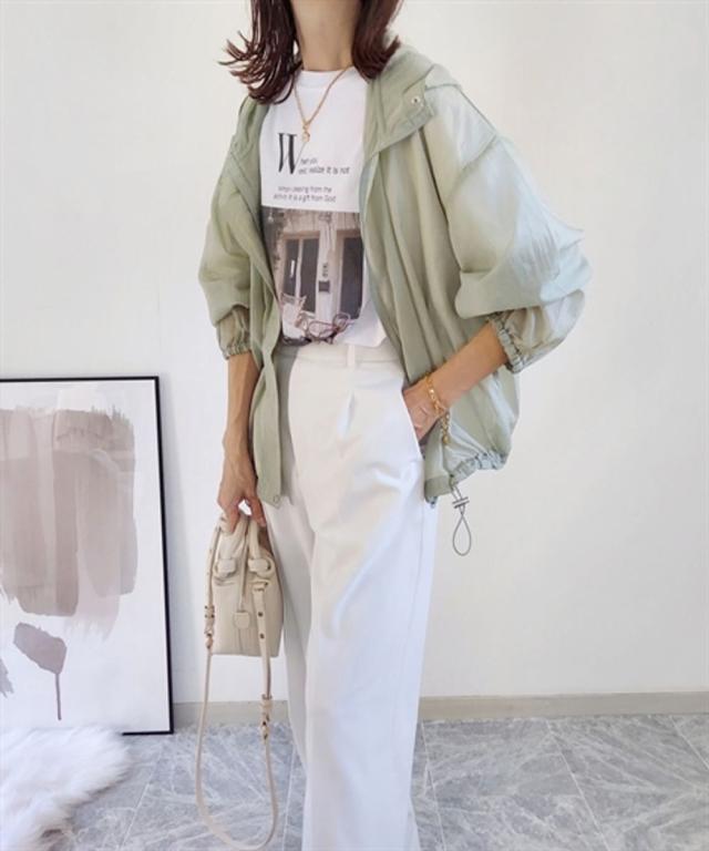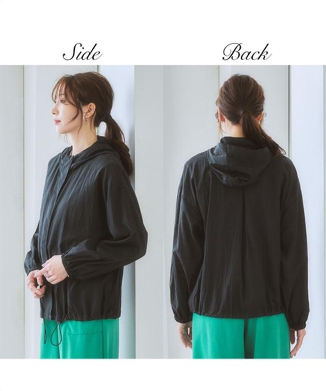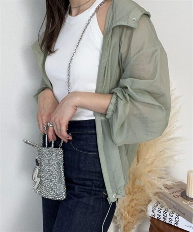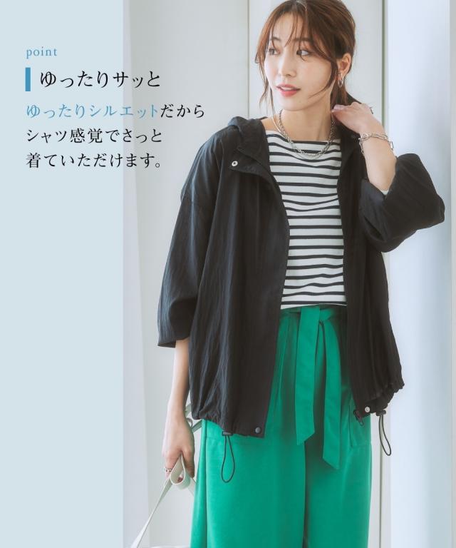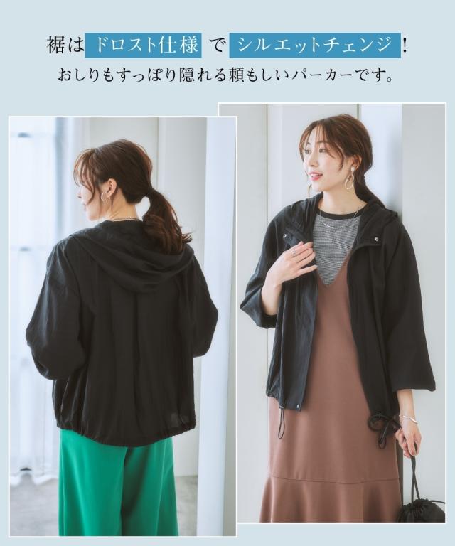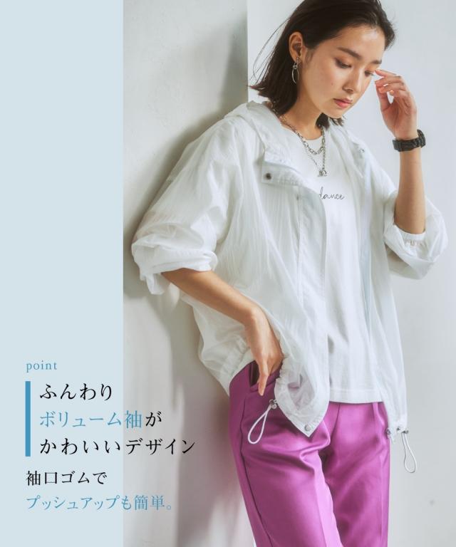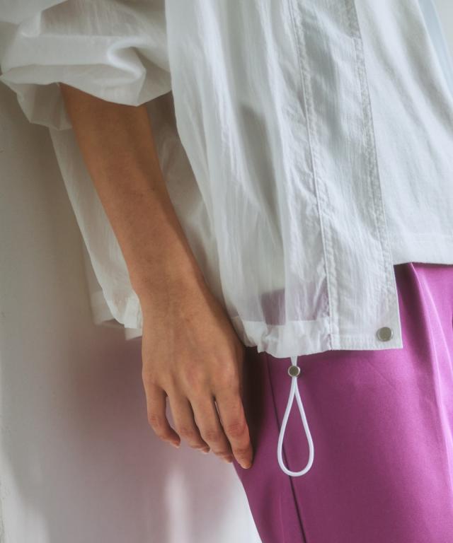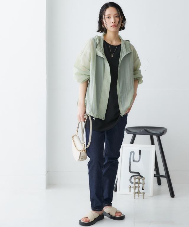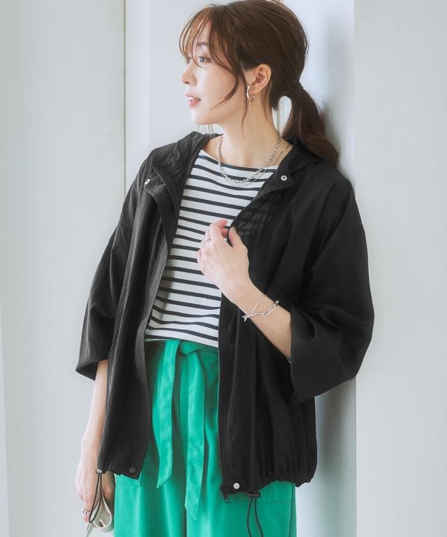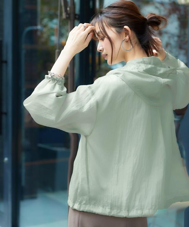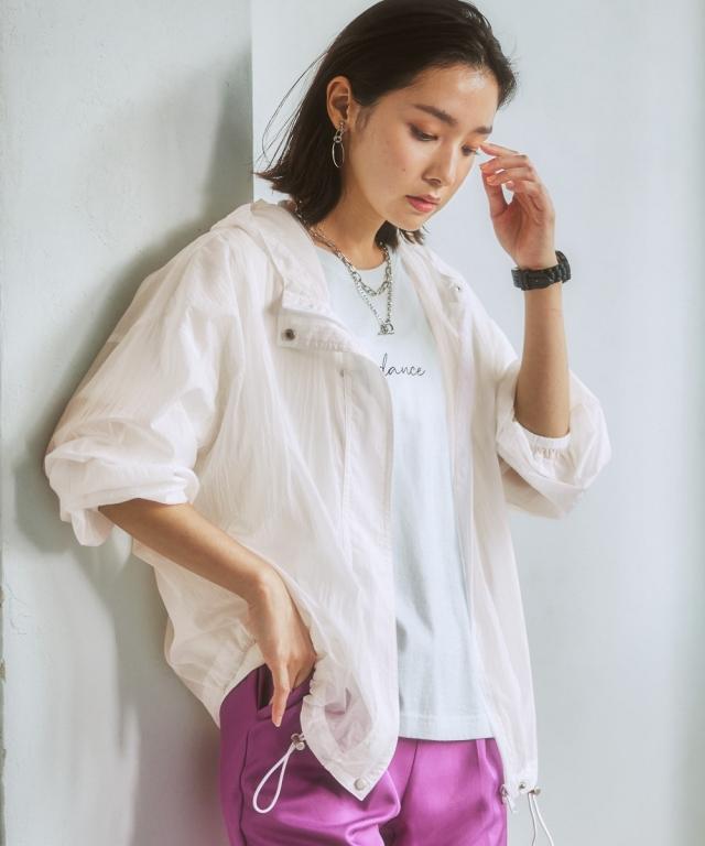 シャカっとさらりとした素材とシアーな旬感が魅力、風になびく軽やかなマウンテンパーカー。