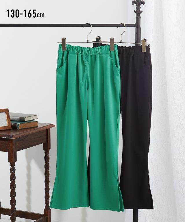 パンツ キッズ 裾スリットフレア 女の子 子供服 ジュニア服 グリーン/黒 身長165cm ニッセン nissen