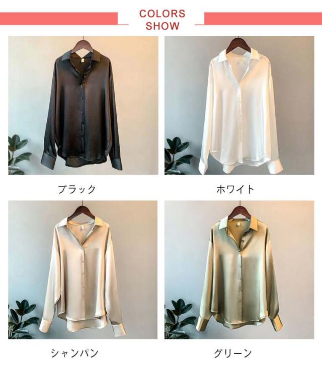 ブラウス レディース シャツ サテン 光沢感 オフィス ブラウス 無地 シャツブラウス 長袖 きれいめ トップス 春 夏 秋 通勤 OL 着痩せ ゆったり 大きいサイズ 体型カバー お洒落 光沢感 サテン風 シルクタッチ オフィス ビジネス 送料無料 20代 30代 40代