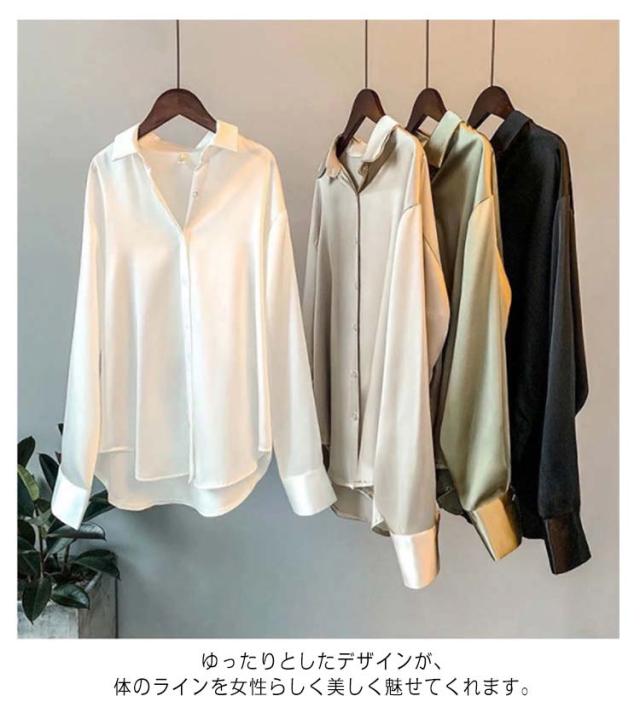 | S-3XL!サラッと快適なサテン調生地の長袖シャツ。 上品な光沢や、サラつるの肌触りが涼し気で爽やかな印象に◎ シルクタッチで滑らかな素材なので、身体にフィットしすぎなくて、ストレスフリーの着心地を実現。 ゆったりとしたデザインが、体のラインを女性らしく美しく魅せてくれます。 一枚単品としても、アウターのインナーとしても使える万能itemです。 オフィスウエアからデートコーデまで幅広く使えるトップス。 | |