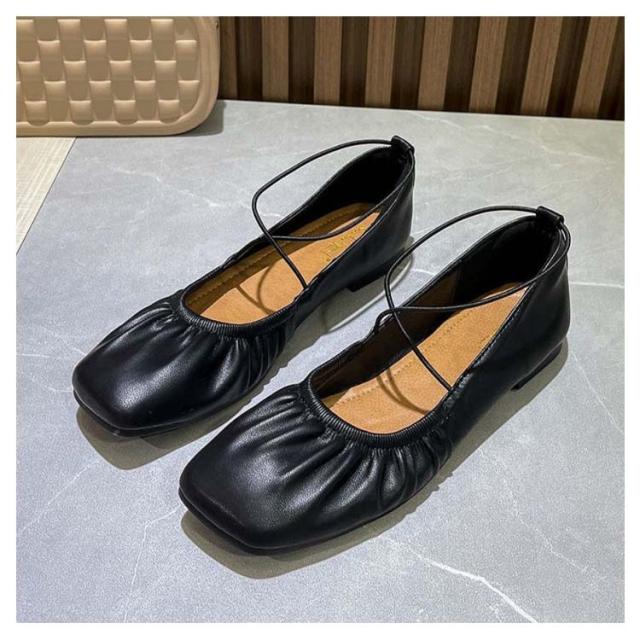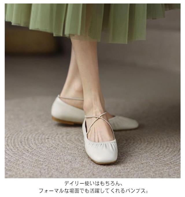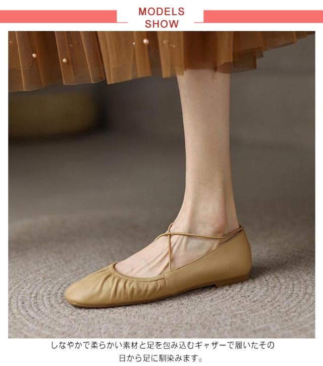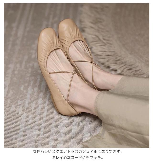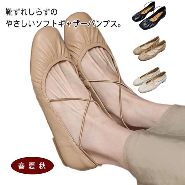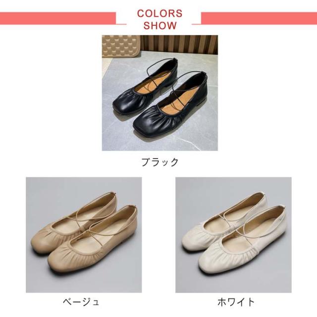 歩きやすい パンプス ぺたんこ レディース フラットシューズ スクエアトゥ 柔らかい 春 夏 秋 バレエシューズ シューズ 靴 ソフト ギャザー 痛くない 走れる オフィス 立ち仕事 人気 おしゃれ