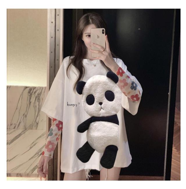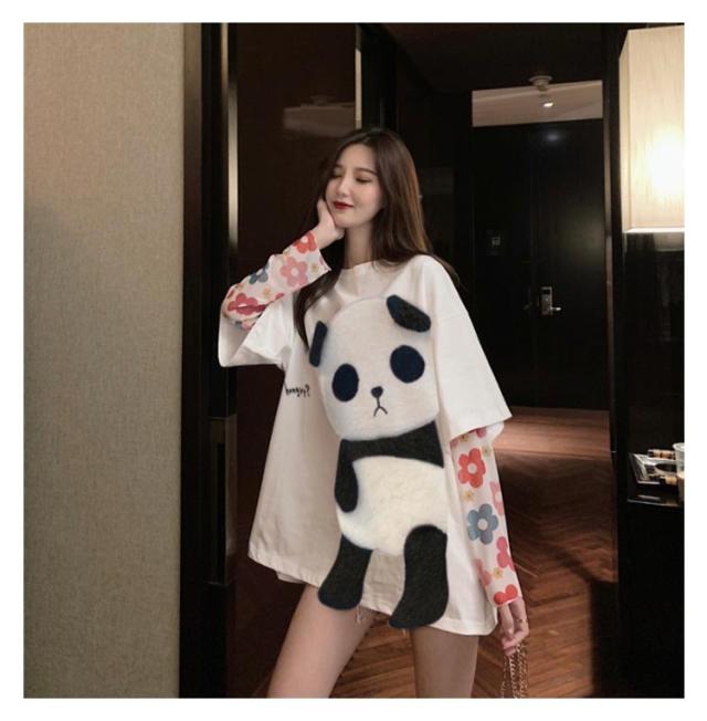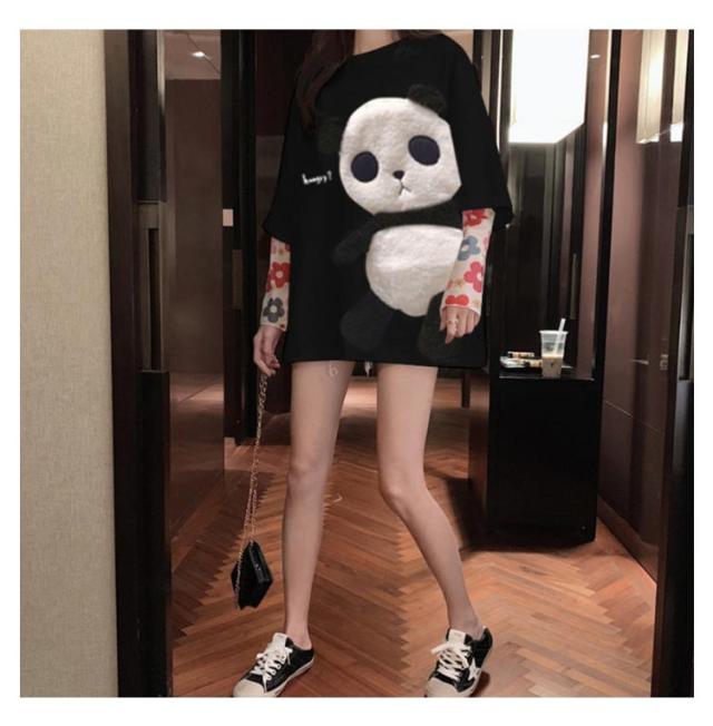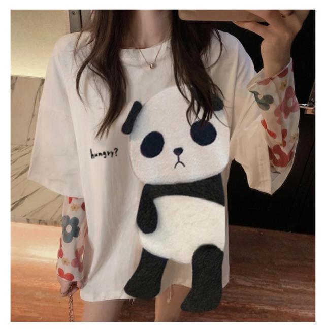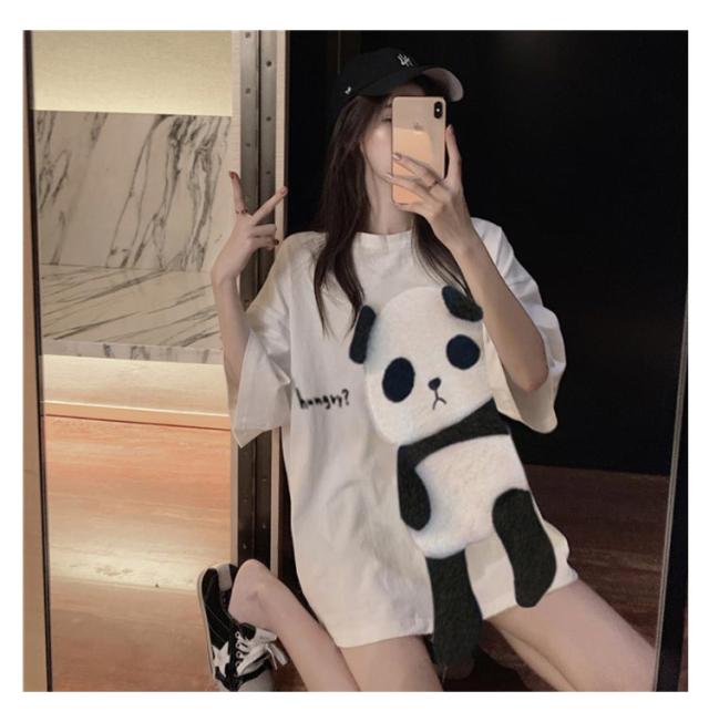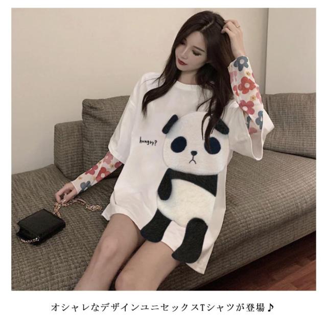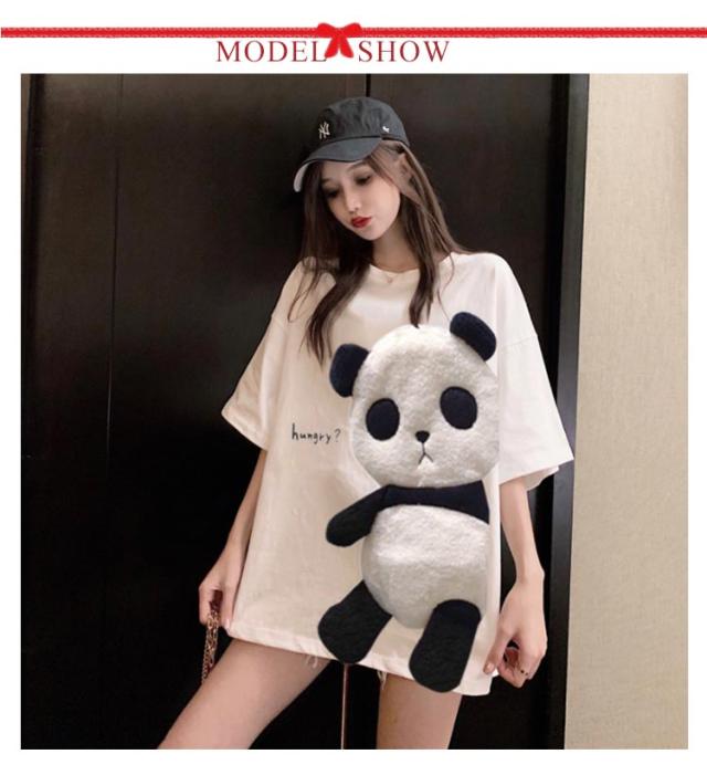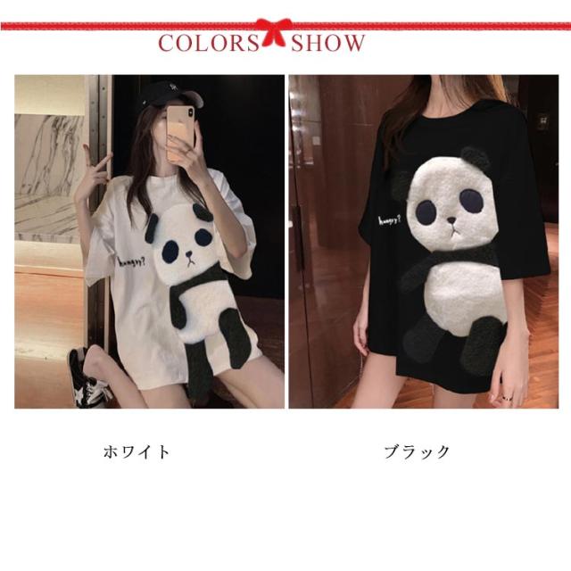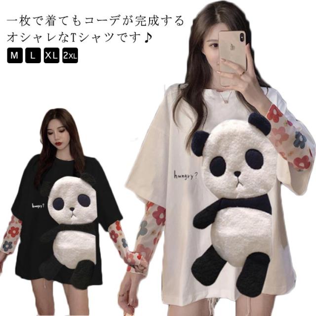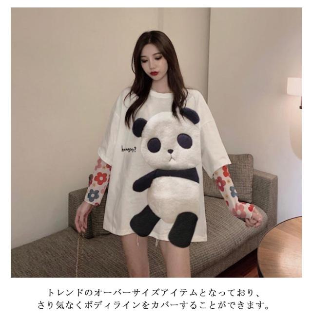 Tシャツ レディース 半袖 大人 かわいい おしゃれ 立体 プリント チュニック アニマル ビッグt オーバーサイズ ビッグシルエット パンダ トップス 大きめ カジュアル ゆったり 大きいサイズ 送料無料