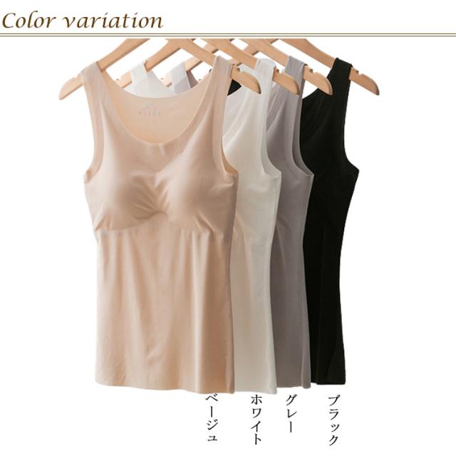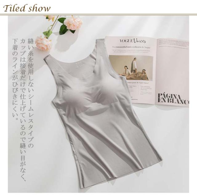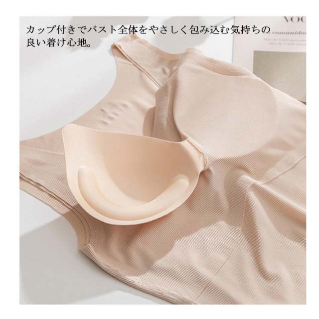 | ラインがひびきにくい無縫製カップ付きタンクトップ。 カップ付きながらノンワイヤーなのでリラックスした着心地。 体にぴったりフィットし、横流れを防ぎ、美しいバストラインを実現します! ソフトな生地感&ぐーんと伸びる抜群のストレッチ性で、動きを妨げず優しく肌に寄り添います。 シームレスで幅広の肩ストラップは肌や肩への負担を軽減し、長時間の着用でも食い込みがありません! デイリーはもちろん、おうちでのリラックスタイムにも便利なインナーです。 | |