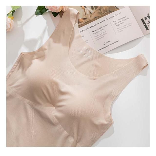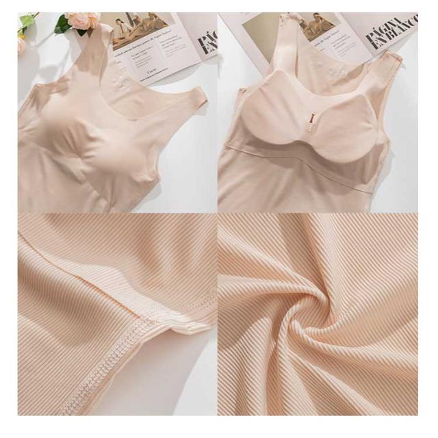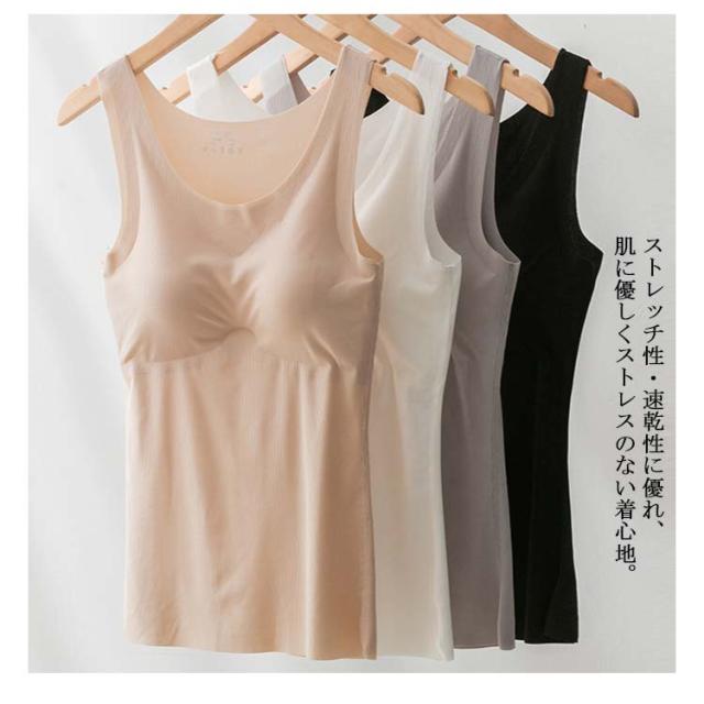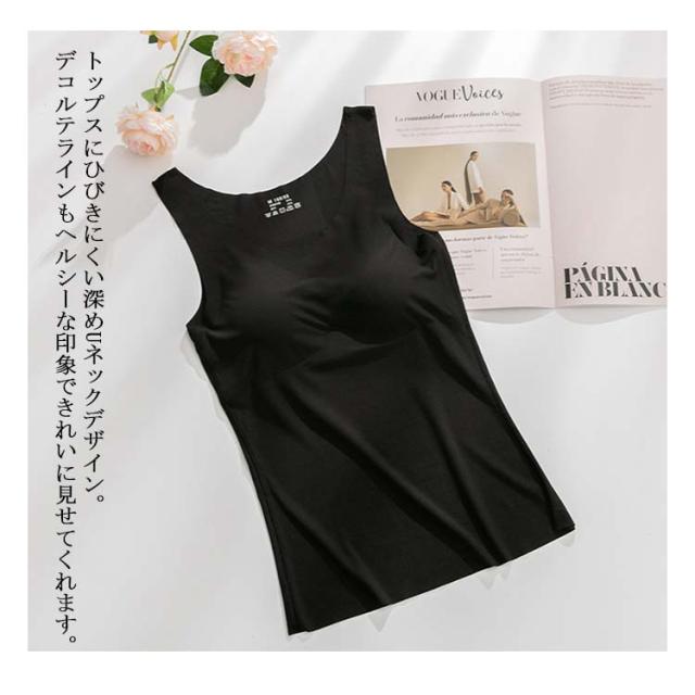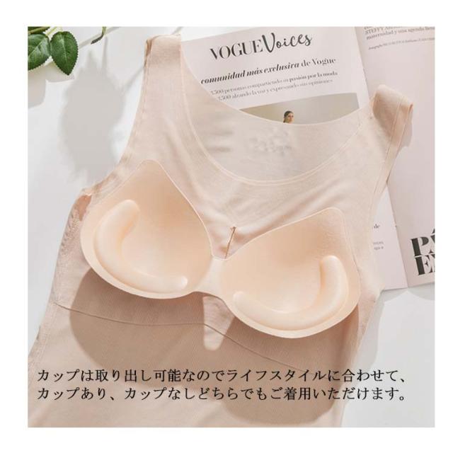 送料無料 シームレス タンクトップ カップ付き ブラトップ Uネック レディース ノースリーブ インナー 無縫製 タンク 綿混 細リブ 無地 肌着 ノンワイヤー 春夏 スポーツブラ ひびきにくい 下着 おしゃれ シンプル ストレッチ