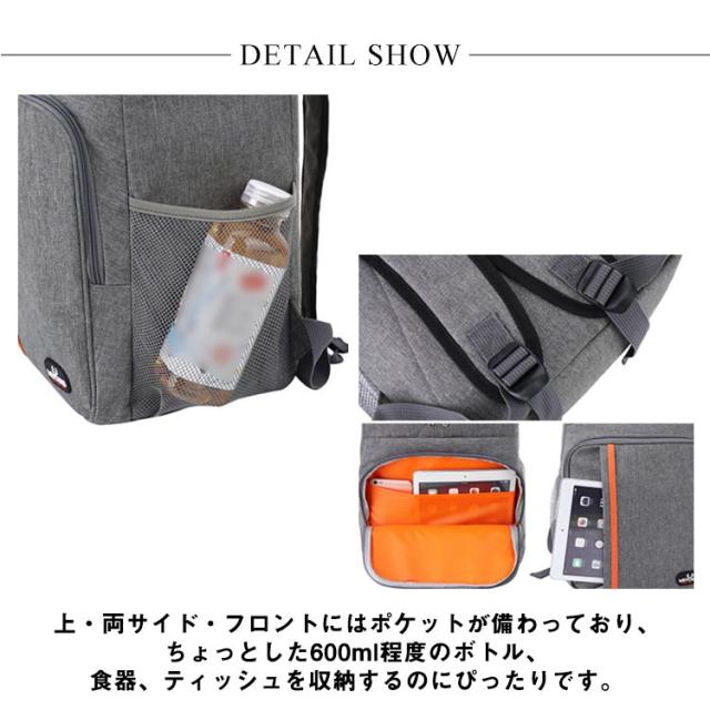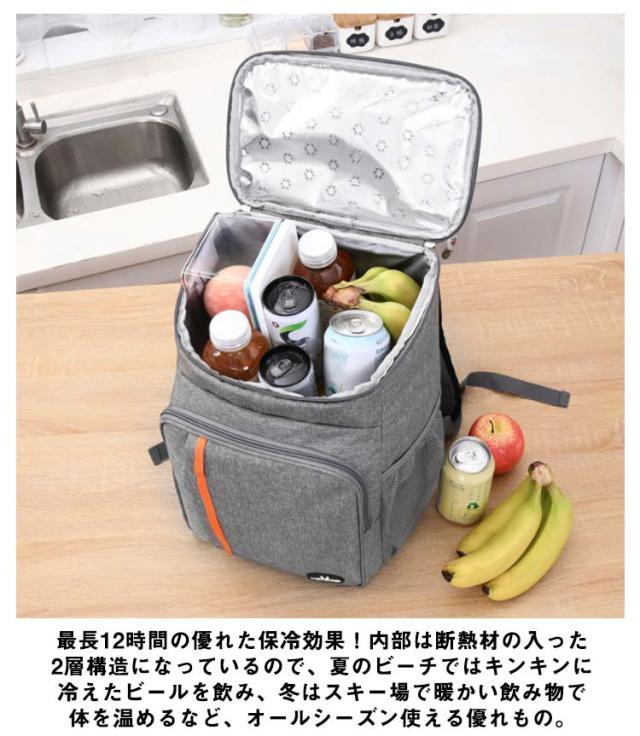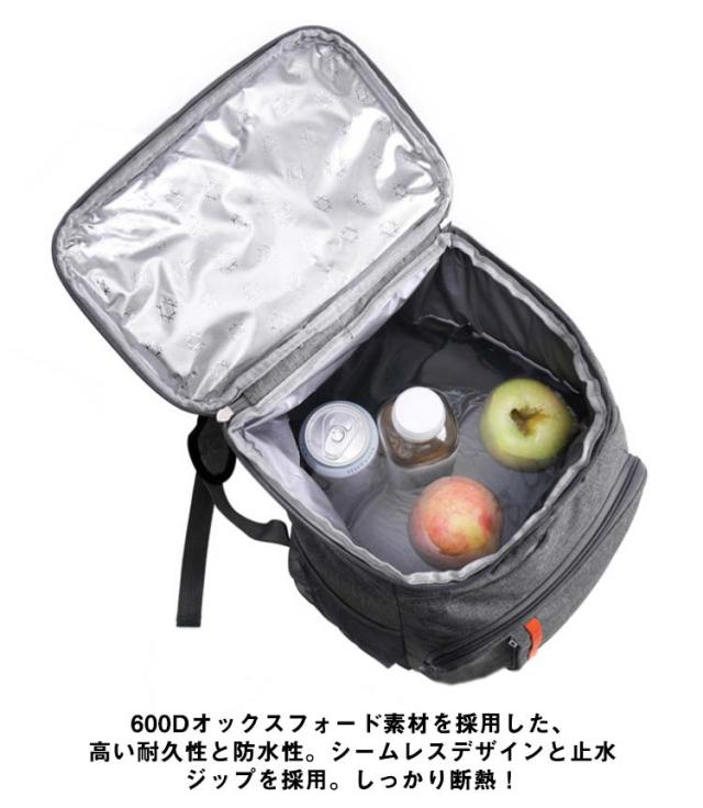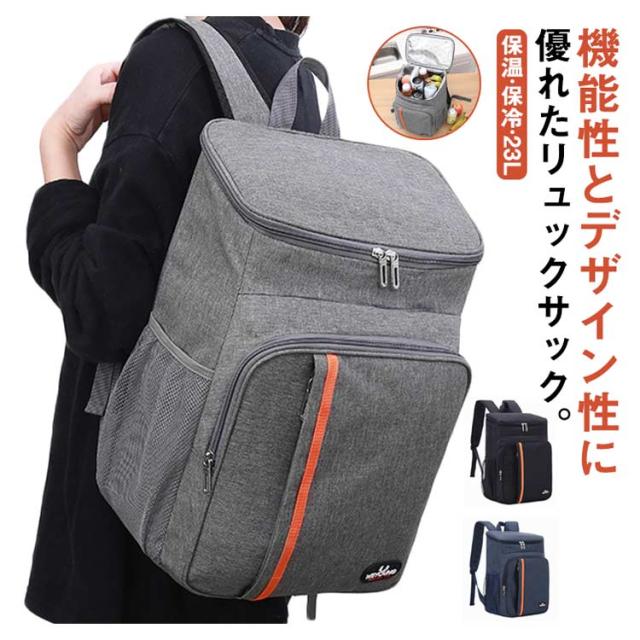 | 機能性とデザイン性に優れたリュックサック。【保温?保冷?23L】 最長12時間の優れた保冷効果!内部は断熱材の入った2層構造になっているので、夏のビーチではキンキンに冷えたビールを飲み、冬はスキー場で暖かい飲み物で体を温めるなど、オールシーズン使える優れもの。 上・両サイド・フロントにはポケットが備わっており、ちょっとした600ml程度のボトル、食器、ティッシュを収納するのにぴったりです。 600Dオックスフォード素材を採用した、高い耐久性と防水性。シームレスデザインと止水ジップを採用。しっかり断熱! キャンプやピクニック、ハイキング、海水浴、バーベキューなどのレジャー、行楽はもちろん、日々のお買い物にもおすすめです。 | |
