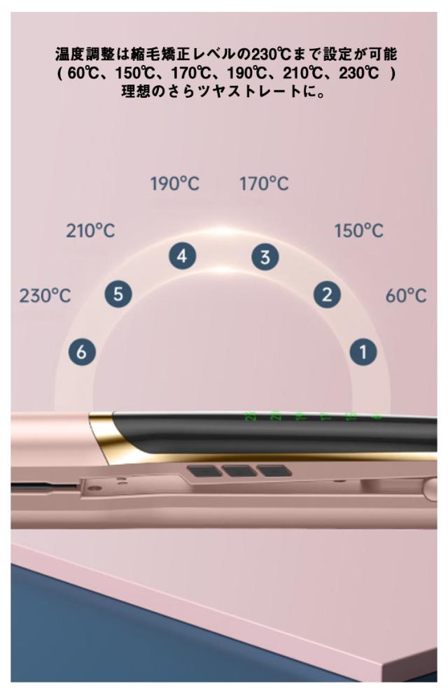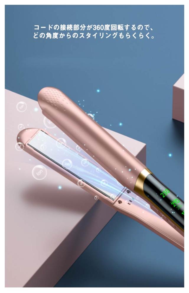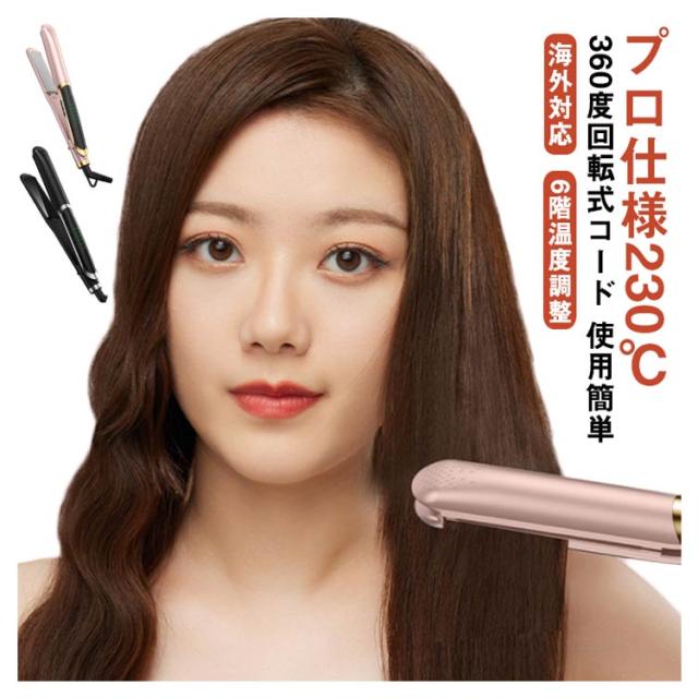 | 1台で、カール&ストレートの2Way!【プロ仕様230℃】【海外対応】 ポイント1:【360度回転式コード】コードの接続部分が360度回転するので、どの角度からのスタイリングもらくらく。 ポイント2:【ワンタッチロック】開閉ロックがワンタッチでできるため持ち運びもらくらく。 ポイント3:【使用簡単】三つのボタンしかないので、使用簡単!温度プラス、温度マイナス、ON/OFF。 ポイント4:【海外対応】100V-240V対応なので海外でもご使用可能。旅行先でも理想的なヘアスタイルも作れます。 【 フローティング&クッションプレート 】髪への余分な圧力を逃すクッション機能を搭載。髪とプレート間の摩擦によるダメージを大幅に?らし、枝毛や断毛を防ぎ、理想のストレートヘアに仕上げます。 【 6階温度調整 】温度調整は縮毛矯正レベルの230℃まで設定が可能 ( 170℃、190℃、210℃、230℃ ) 理想のさらツヤストレートに。 【 立ち上がり時間】電源を入れてから約30秒で使用可能な温度までスピーディーに到達。朝の忙しいスタイリング時間の短縮につながります。 | |