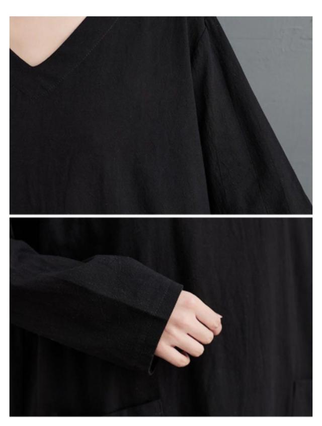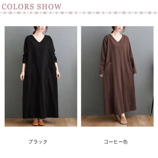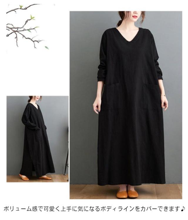 送料無料 ロングワンピース 長袖 Vネック ワンピース レディース ビッグシルエット ロング丈 ゆったり チュニック マキシ丈 オーバーサイズ 春秋 無地 着痩せ 体型カバー 外出 マキシ 可愛い 春服 夏服 秋服 ルームウェア 部屋着