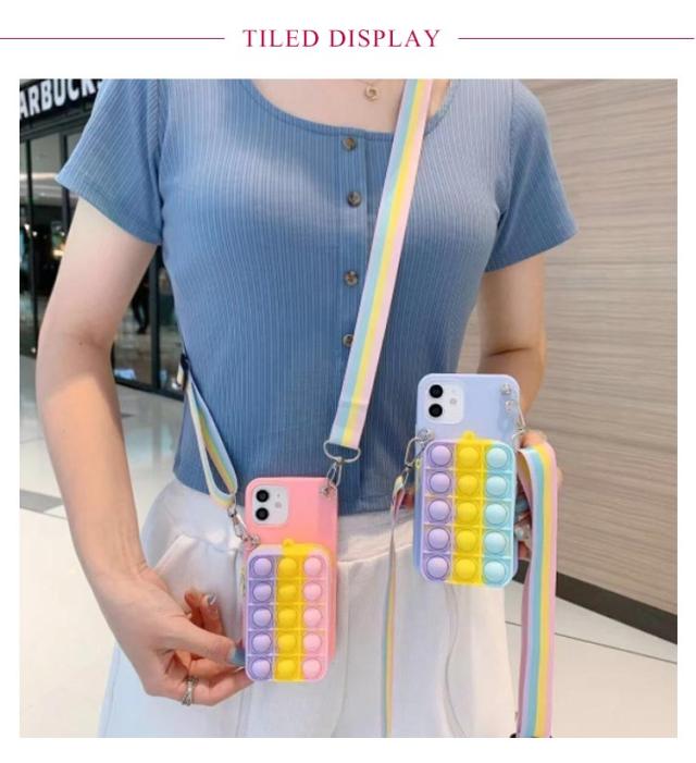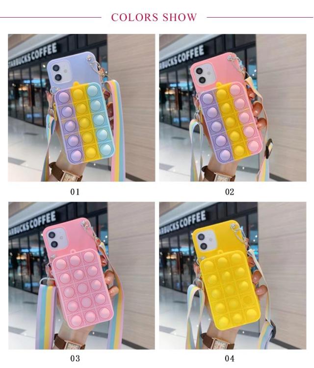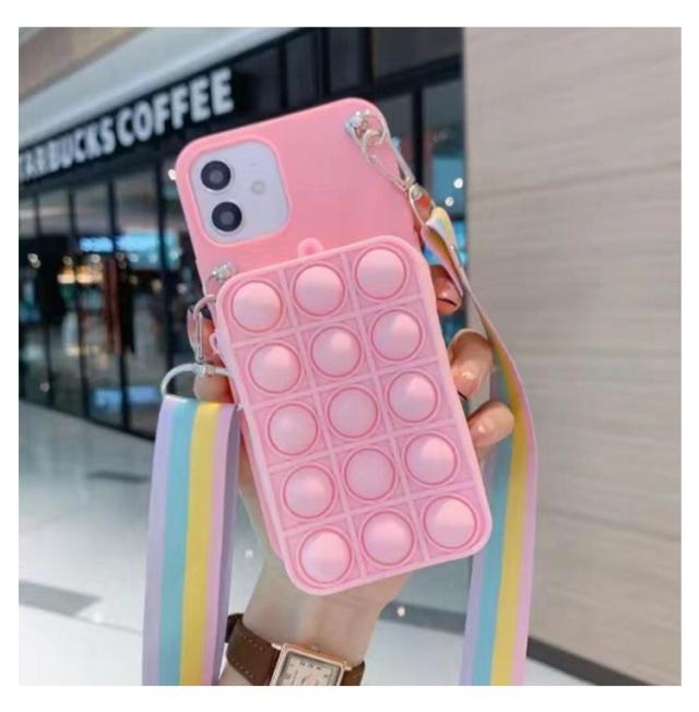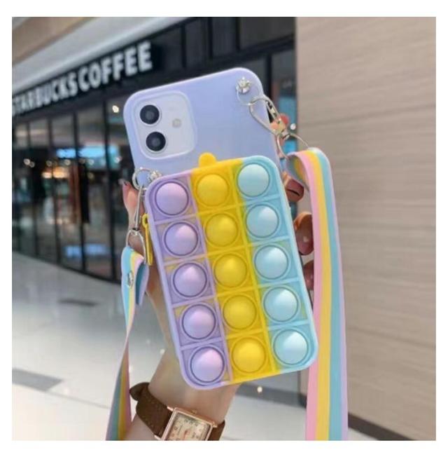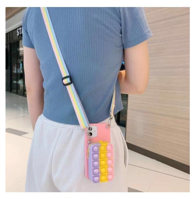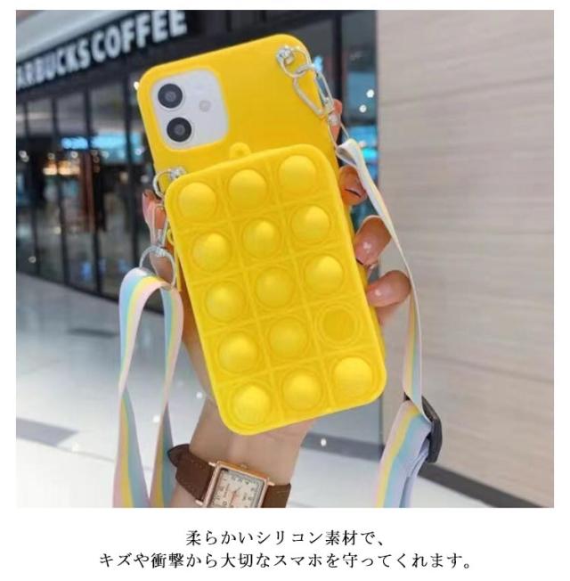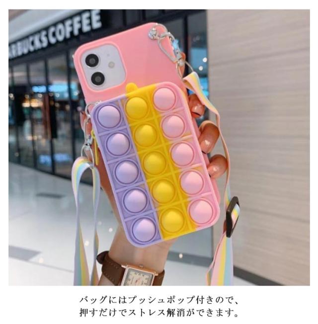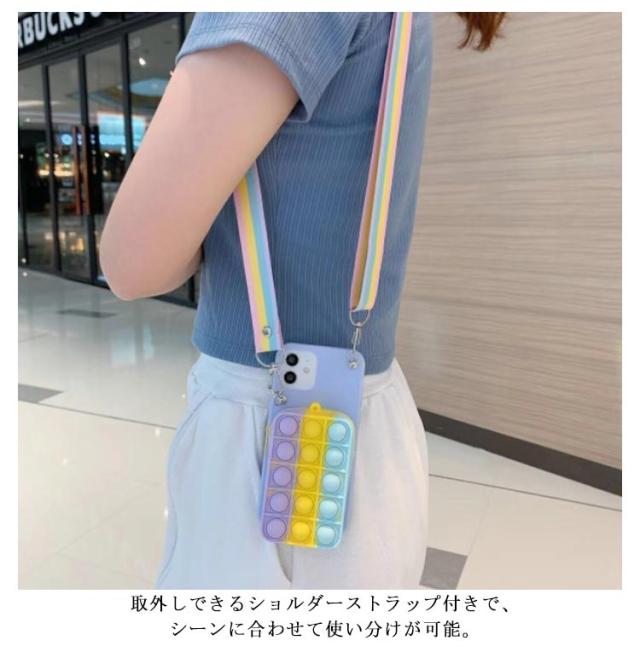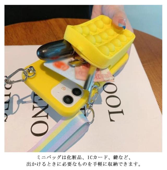 | プッシュポップのミニバッグと斜め掛けストラップ付きiPhoneケース。 ミニバッグは化粧品、ICカード、鍵など、出かけるときに必要なものを手軽に収納できます。 バッグにはプッシュポップ付きので、押すだけでストレス解消ができます。 柔らかいシリコン素材で、キズや衝撃から大切なスマホを守ってくれます。 取外しできるショルダーストラップ付きで、シーンに合わせて使い分けが可能。 | |