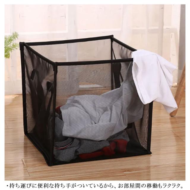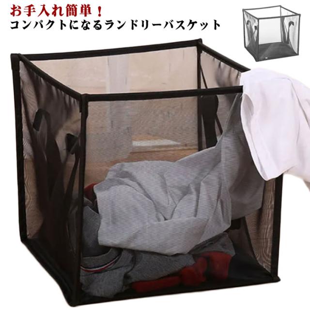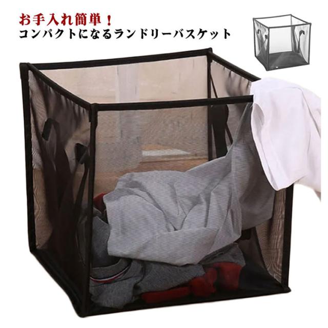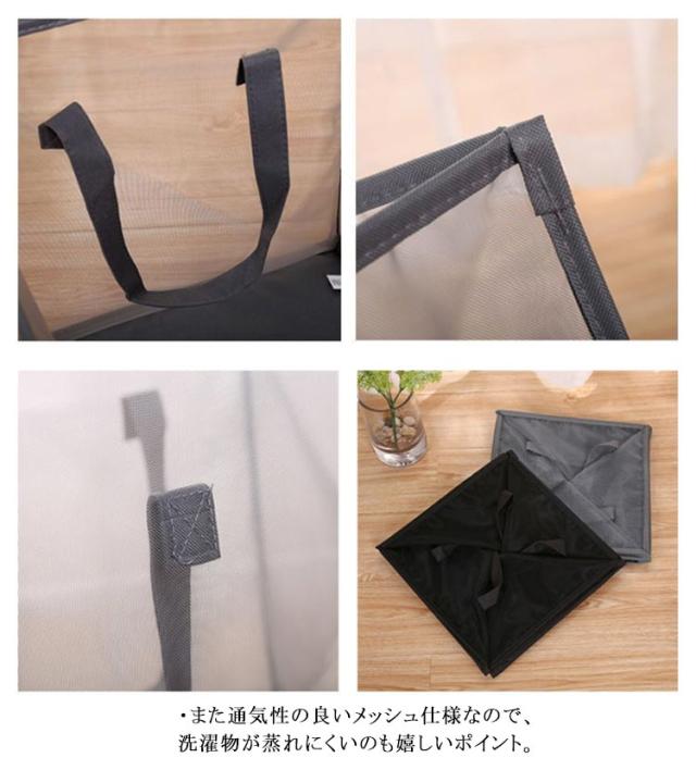 折りたたみランドリーバスケット メッシュ カゴ 取っ手付き ランドリー 収納 洗濯かご コンパクト 省スペース 持ち運び便利 洗濯物入れ 洗面所 脱衣所 おしゃれ 無地 全2色