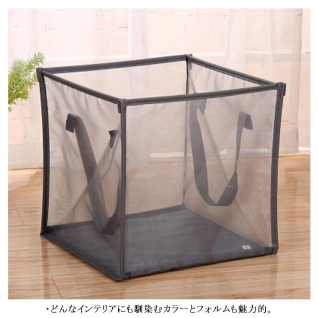 | ・お手入れ簡単!コンパクトになるランドリーバスケット ・丈夫なメッシュ素材を使用した、スクエア型のバスケット。 ・持ち運びに便利な持ち手がついているから、お部屋間の移動もラクラク。 ・時計回りにクルっと回すとコンパクトに折りたためるので、棚の中や洗濯機の隙間など置き場所を選ばず収納できて便利! ・また通気性の良いメッシュ仕様なので、洗濯物が蒸れにくいのも嬉しいポイント。 ・中が見えるのでお子様のおもちゃを入れたり、マガジンラックとしての使用もおすすめ! ・どんなインテリアにも馴染むカラーとフォルムも魅力的。 | |