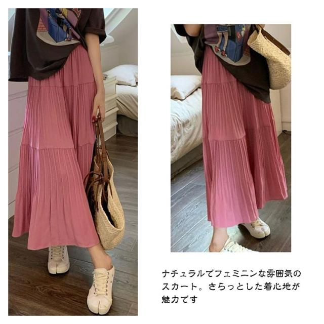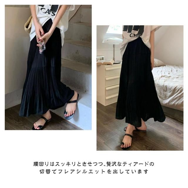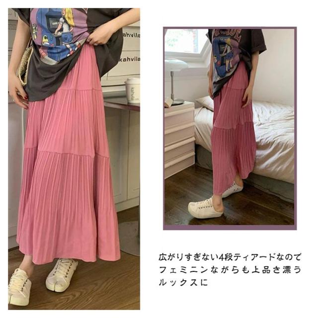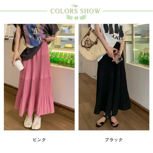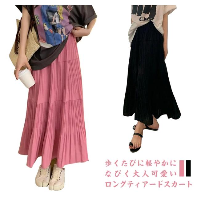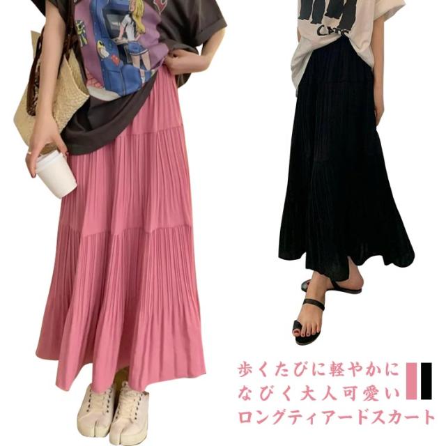 送料無料 ティアードスカート ロングスカート プリーツスカート フレアスカート ボトムス ギャザー マキシ丈 Aライン フレア ティアード ふんわり レディース 春 夏 高見え 上品 きれいめ 大きいサイズ ブラック ピンク