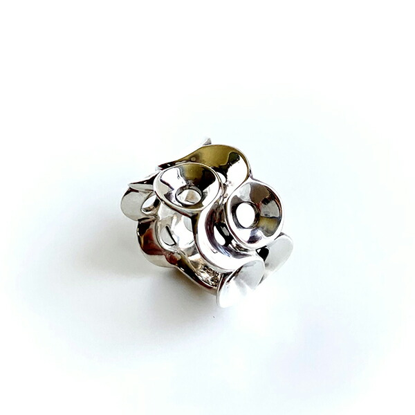 サークルリング。デザイン画も全く起こさず、頭のイメージを何度も変更させながら作り上げた、独創的なサークルデザインが特徴になります。イメージで大切にしたのが、女性らしいフォルムと上品さ、時代に左右されないデザインながら、他にない個性的で華やかな造形美。
