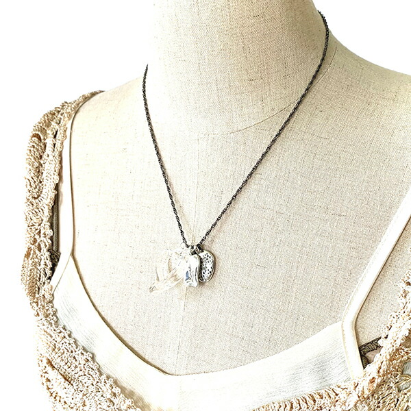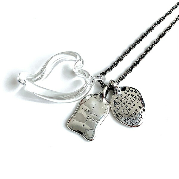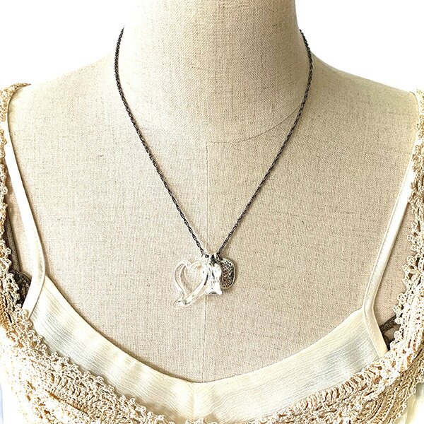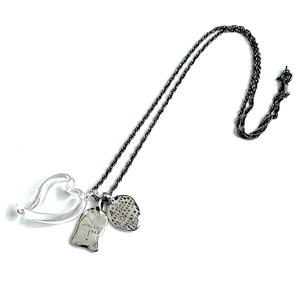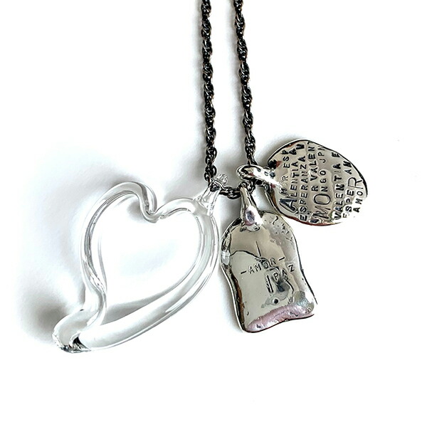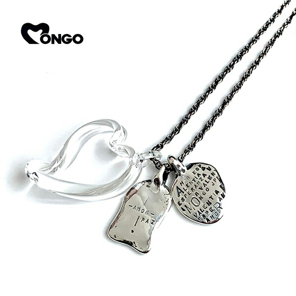 【MONGO/モンゴ】 ガラス ハート & シルバー プレート ネックレス クリア (チェーン付きペンダント)