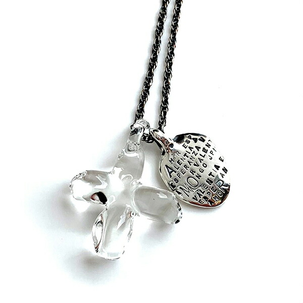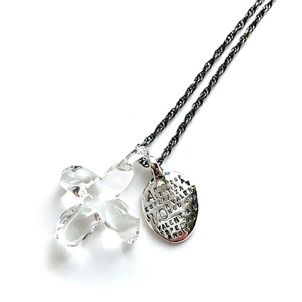 MONGO ガラス リーフ クロス & プレート ネックレス チェーン付き クリア シルバー ペンダント シルバーネックレス メンズ レディース シルバー925