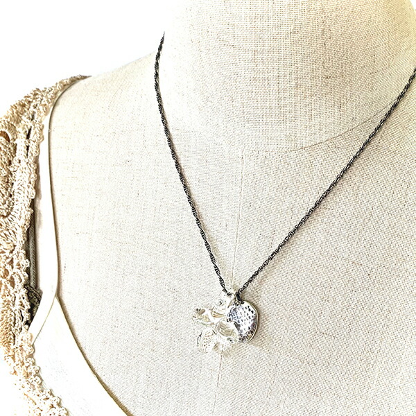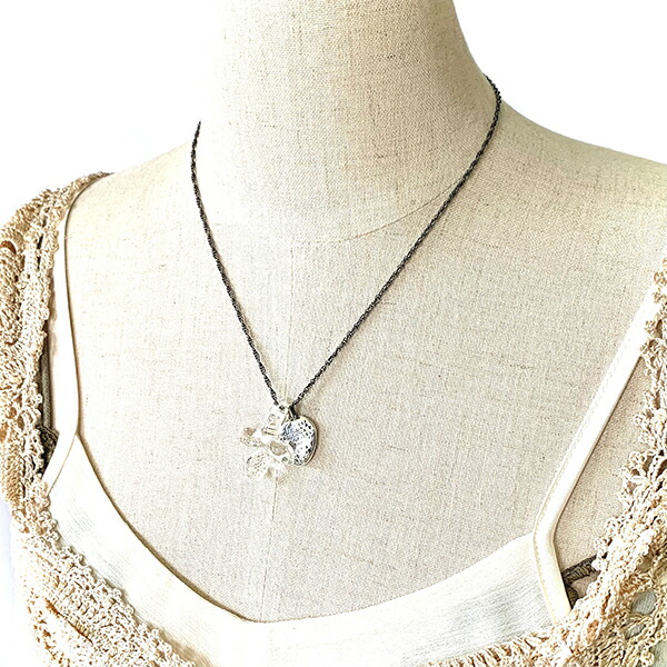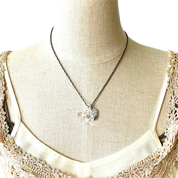【MONGO/モンゴ】 ガラス リーフ クロス & プレート ネックレス クリア (チェーン付きペンダント)