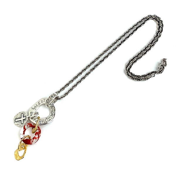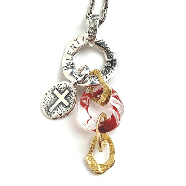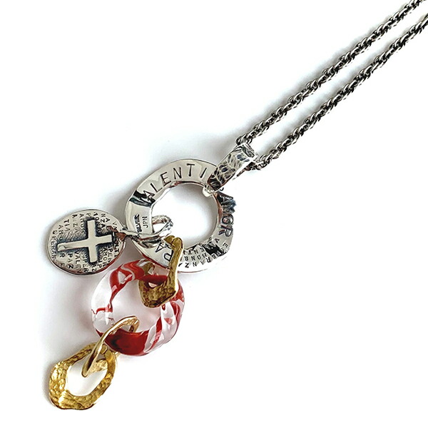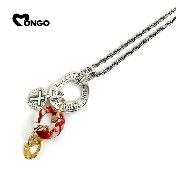MONGO シルバー & ガラス リング ネックレス チェーン付き レッド シルバー ペンダント シルバーネックレス クロス メンズ レディース シルバー925