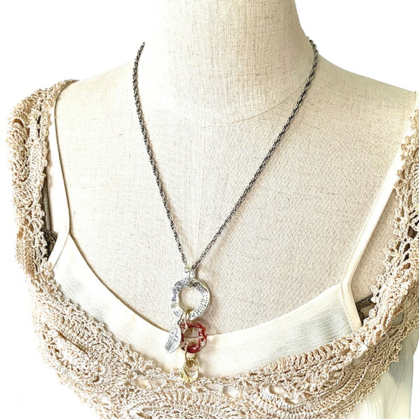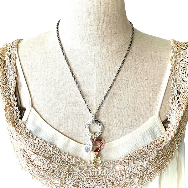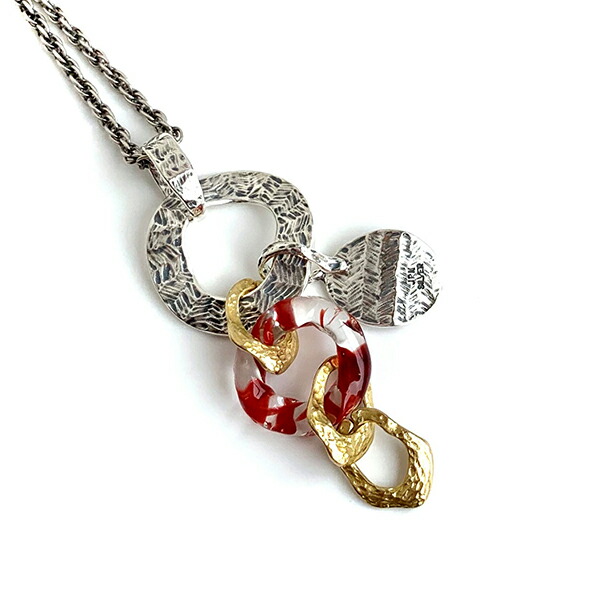 【MONGO/モンゴ】 シルバー & ガラス リング ネックレス レッド (チェーン付きペンダント)