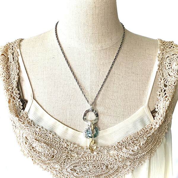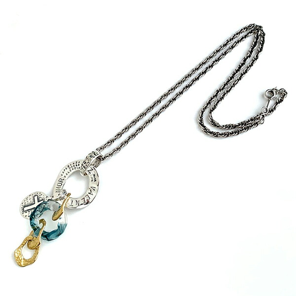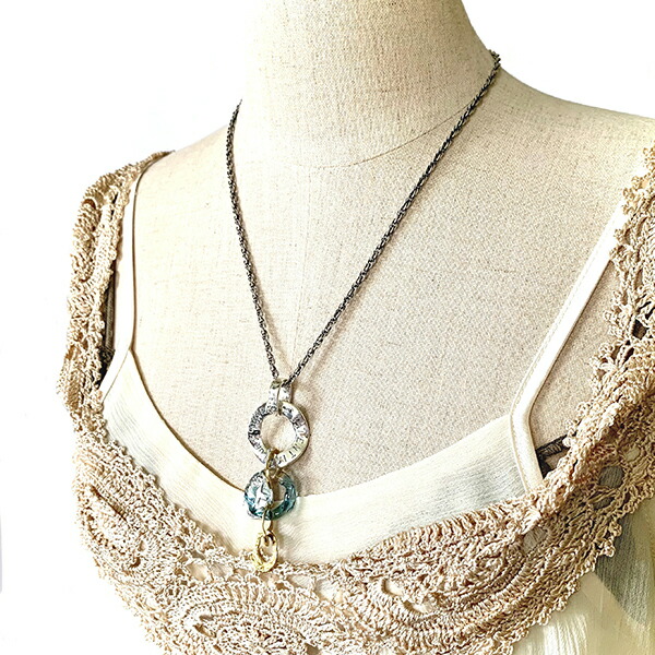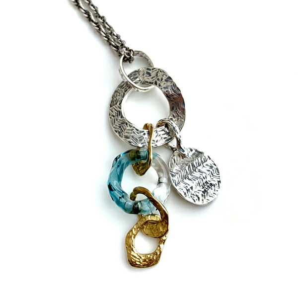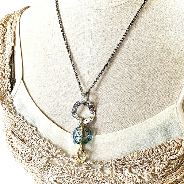 【MONGO/モンゴ】 シルバー & ガラス リング ネックレス ブルーグリーン (チェーン付きペンダント)