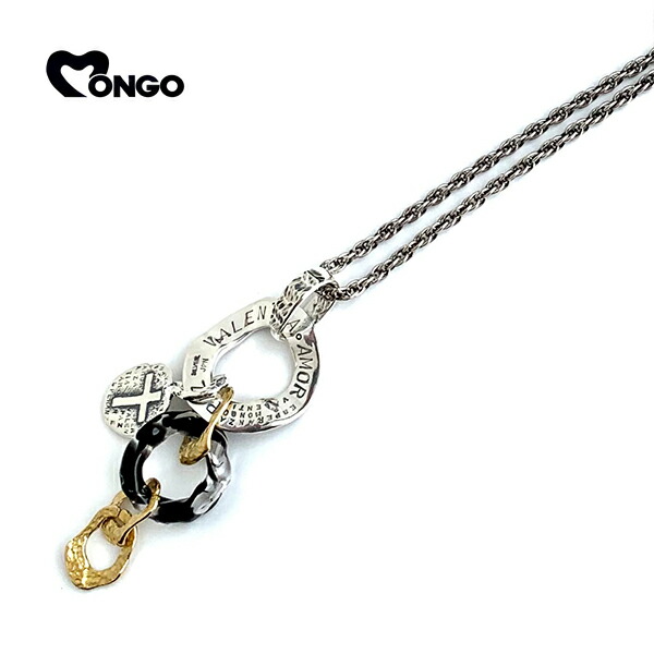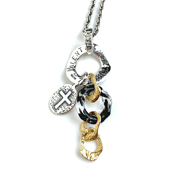 MONGO シルバー & ガラス リング ネックレス チェーン付き ブラック シルバー ペンダント シルバーネックレス クロス メンズ レディース シルバー925