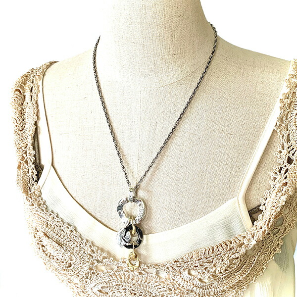 【MONGO/モンゴ】 シルバー & ガラス リング ネックレス ブラック (チェーン付きペンダント)