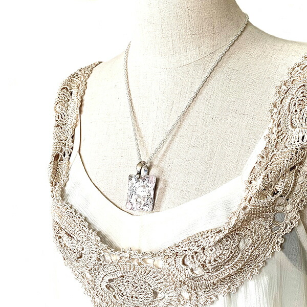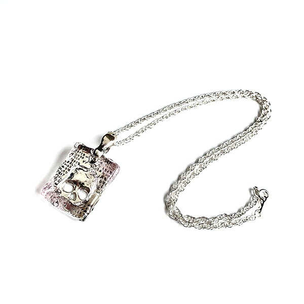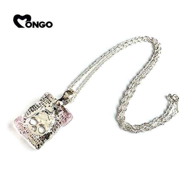 MONGO クリスタル スカル ネックレス チェーン付き ピンク 気泡入り シルバー ペンダント シルバーネックレス メンズ レディース シルバー925 男性