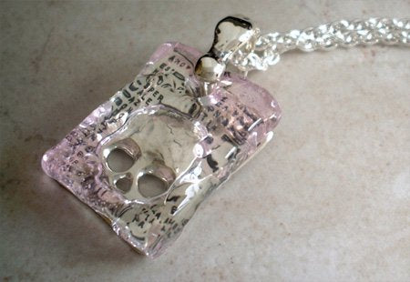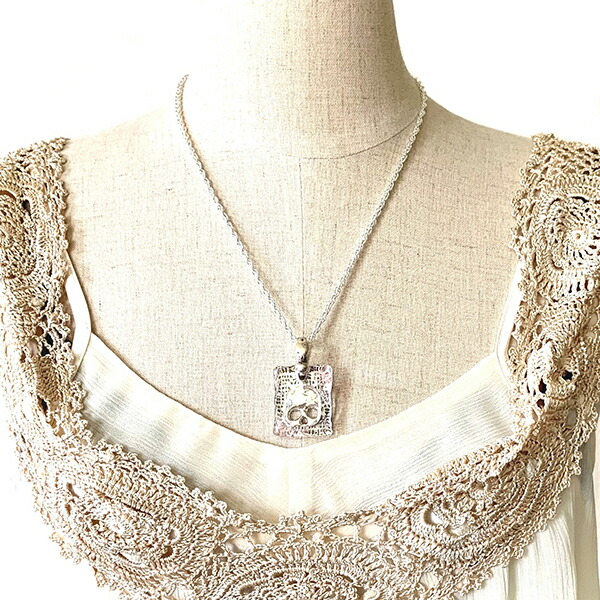 【MONGO/モンゴ】 クリスタル スカル ネックレス ピンク 気泡入り シルバー (チェーン付きペンダント)