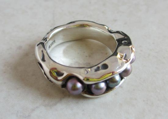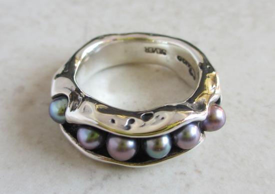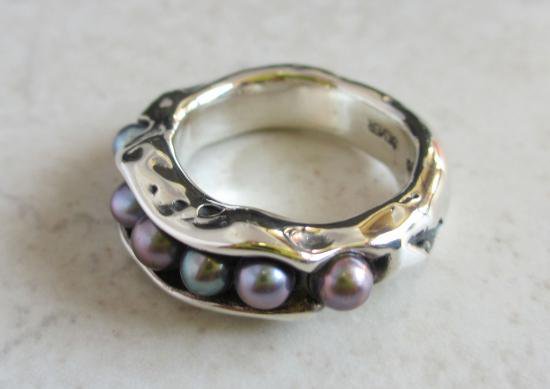 生命の育みをコンセプトに、淡水パール6石をうねりのあるリングにはめ込んだデザインリング。ベースのリングがパールを慈しむ姿が、その様子を物語ります。コンセプトがデザインに影響を与え、その普遍的な形状のデザインが温かみを感じさせてくれて・・・そしてその穏やかな気持ちが日常の周りに振りまかれたら・・・そんな思いから生まれたデザインリングになります。