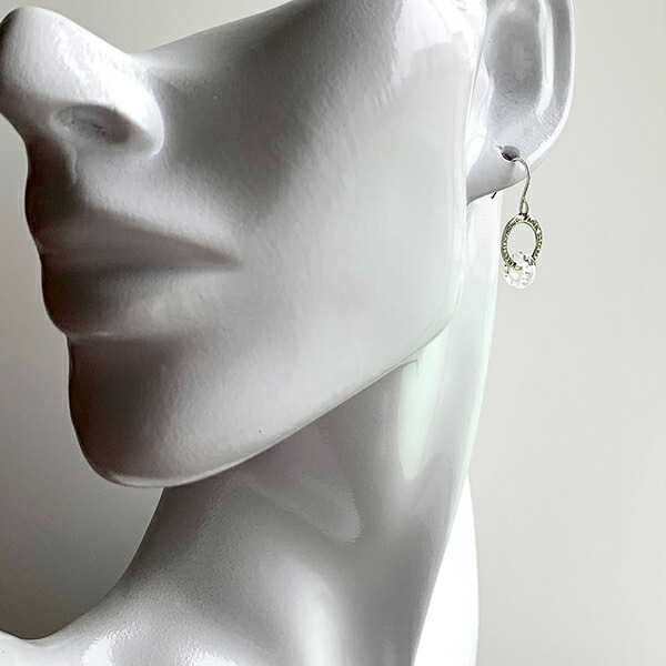 金具とシルバーリングが揺れ、更にシルバーリングに引っ掛かるガラスリングが揺れるデザインで、小さな透明感のあるガラスの動きが可愛らしいです。小さいガラスながら光の屈折を最大限に考慮して、一つずつ丁寧に作られています。
