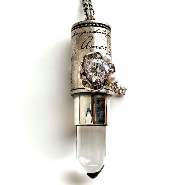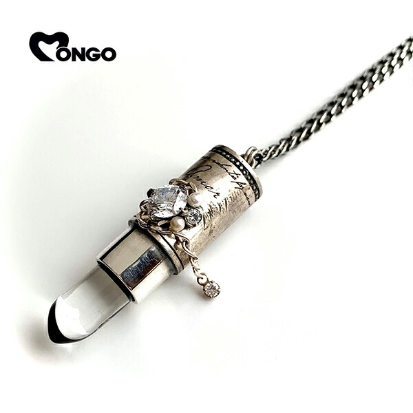 MONGO リップスティック シルバー ネックレス チェーン付き 口紅 クリア ガラス パール ペンダント シルバーネックレス レディース シルバー925 女性