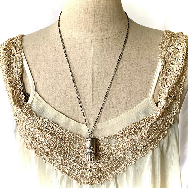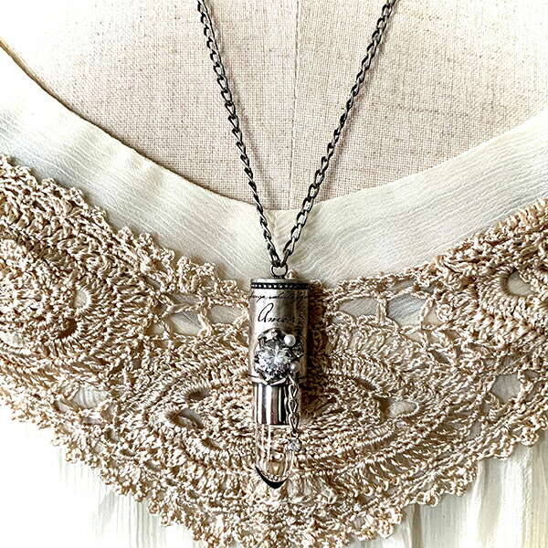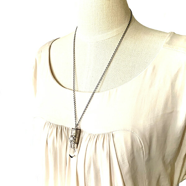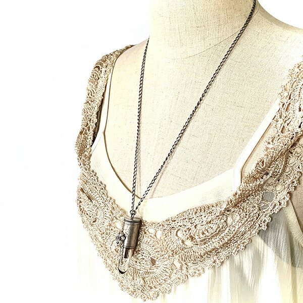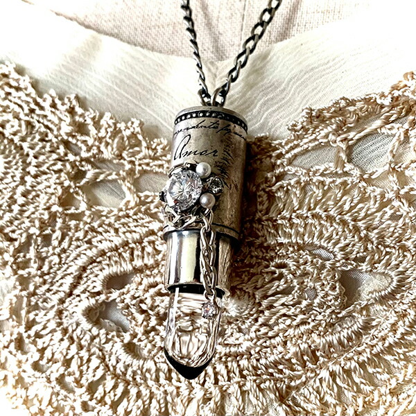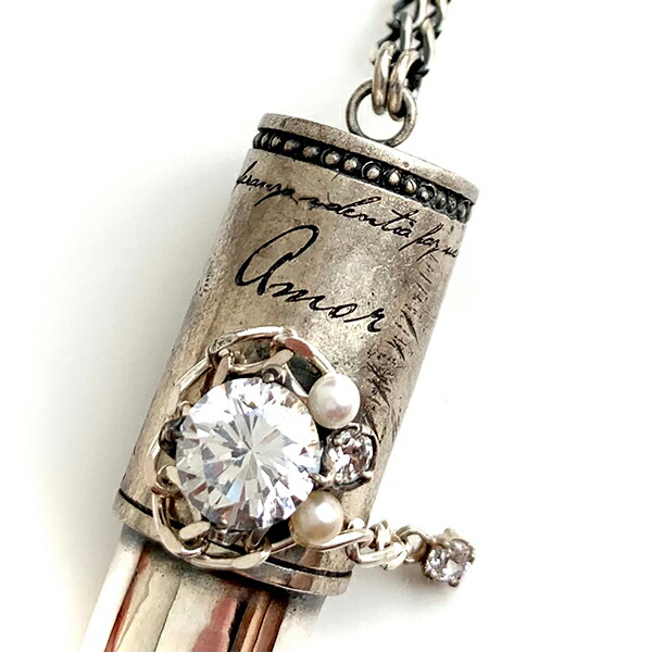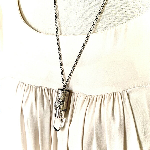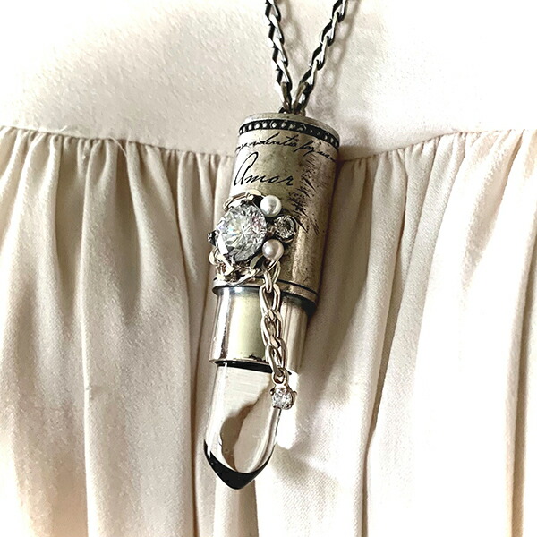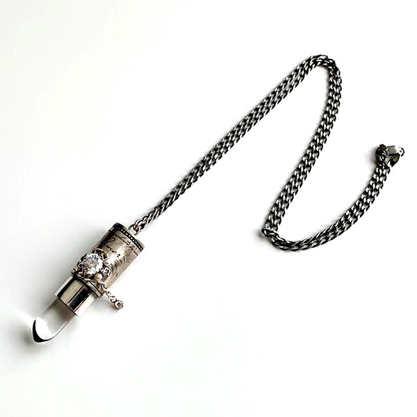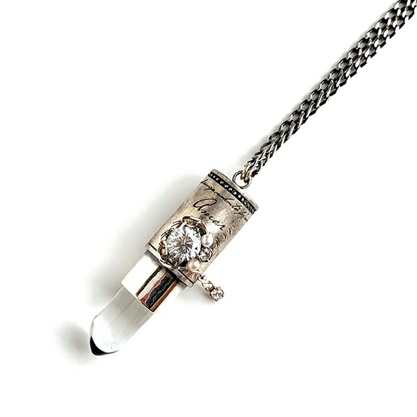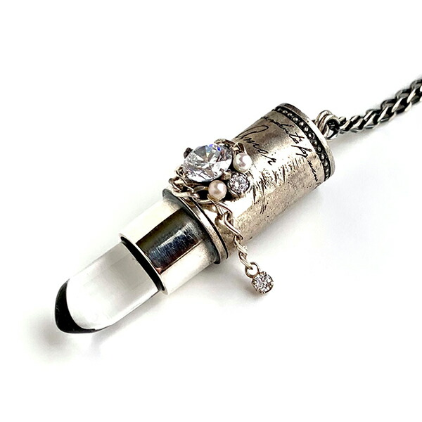 【MONGO/モンゴ】 リップスティック シルバー ネックレス 口紅 クリア ガラス パール (チェーン付きペンダント)
