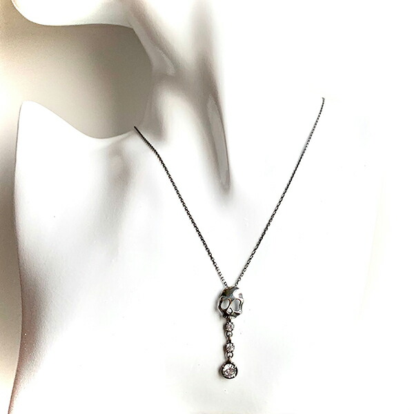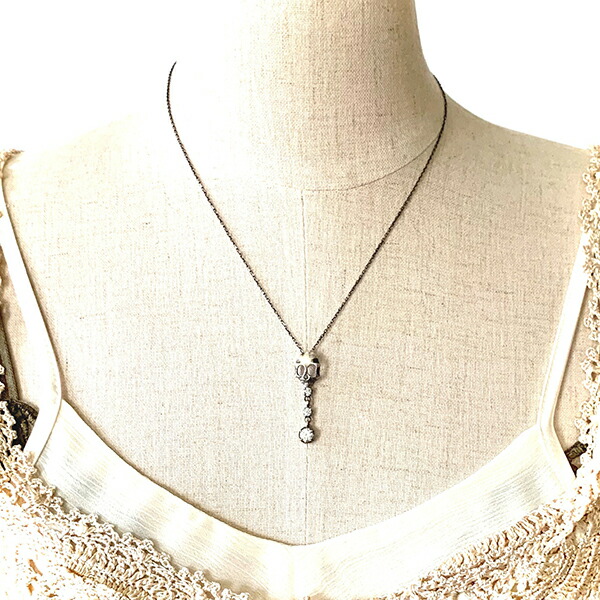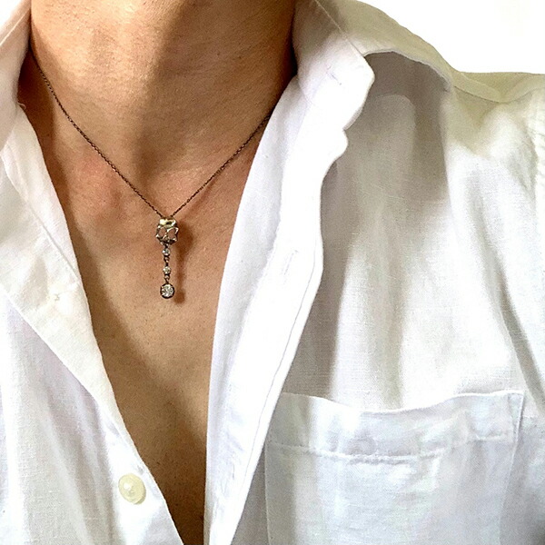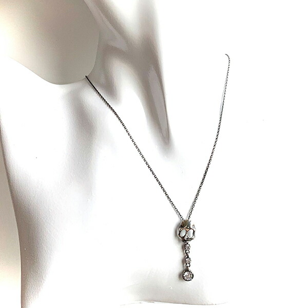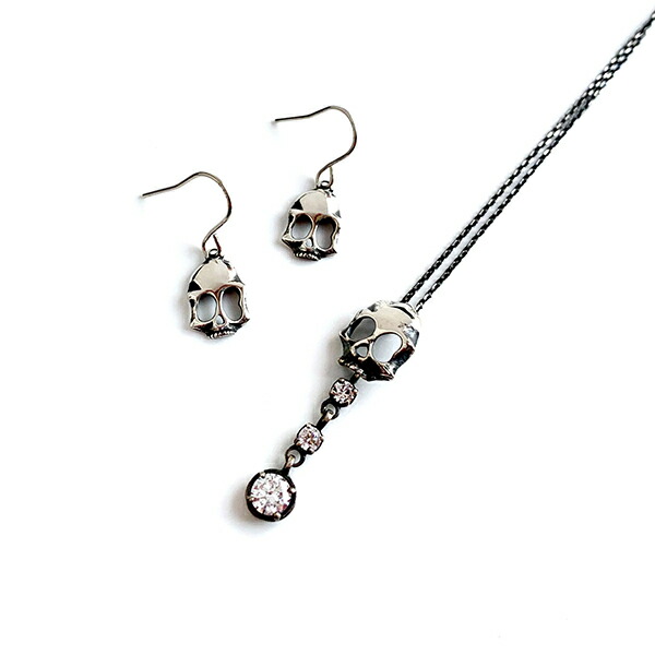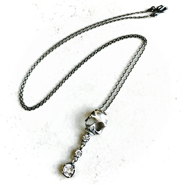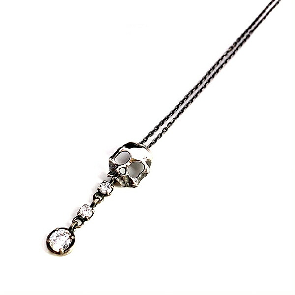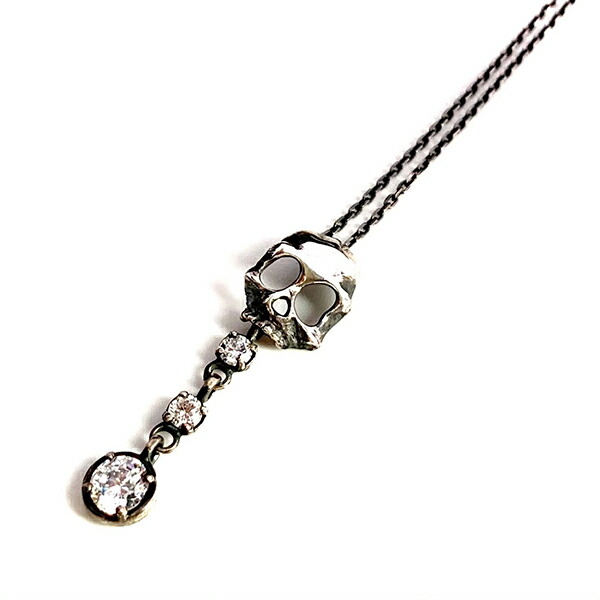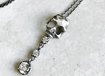 ハードさと甘さを抑えたスカルに、垂れ揺れる石のデザインを組み込んだ、シンプルで華やかなスカルネックレス。