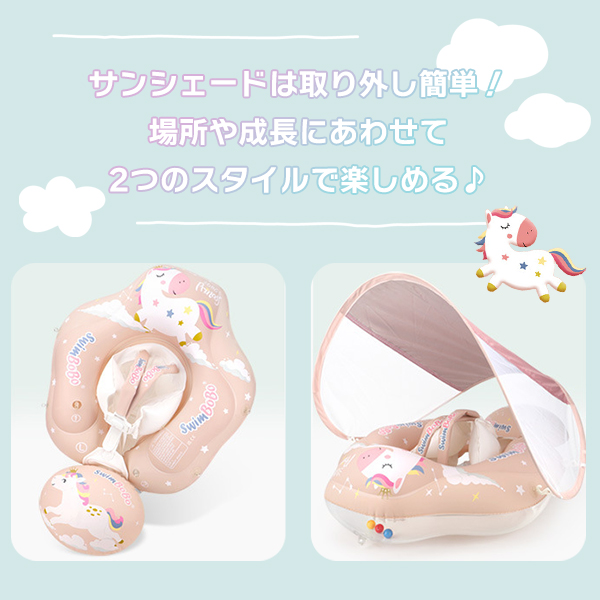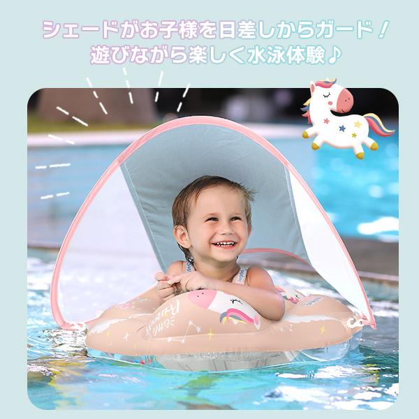 【最安値挑戦中】シェード付き ユニコーン キッズフロート ベルト付き UNICORN 動物 ベビー ボート 浮き輪 うきわ サンシェード付き 屋根 日よけ 日陰 UV プール 海 水遊び 水慣れ マリン 夏 サマー 海水浴 アウトドア ビーチ プール用品 取り外し ネコポス送料無料!