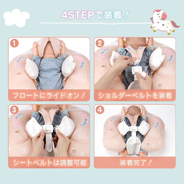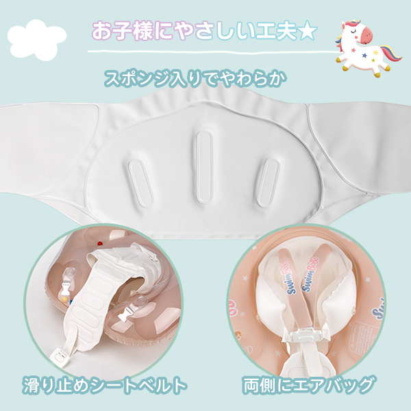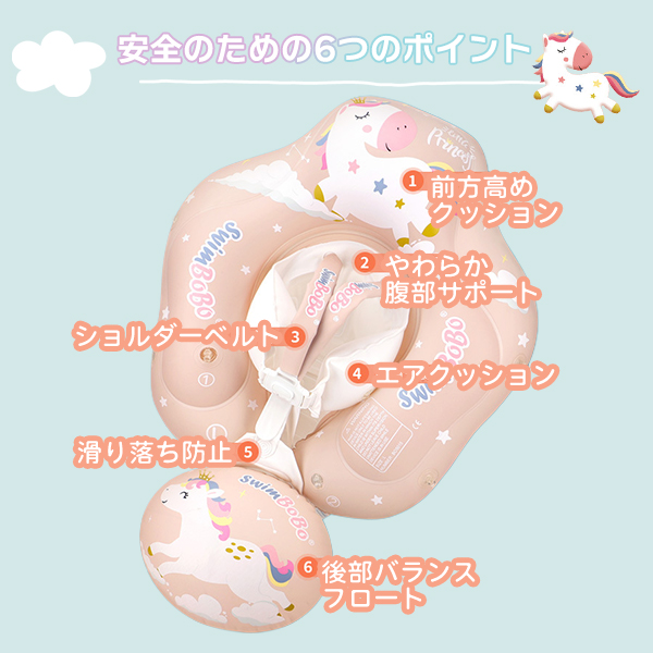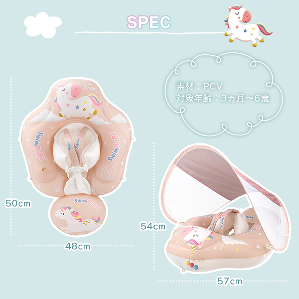 赤ちゃんの初めての水遊びにぴったりのユニコーン型浮き輪。