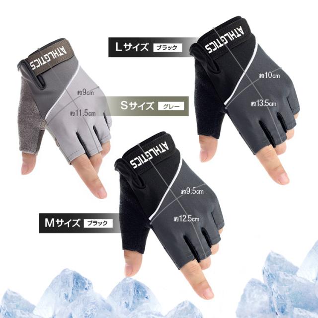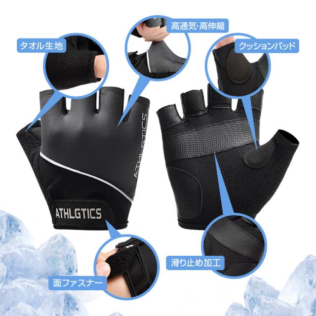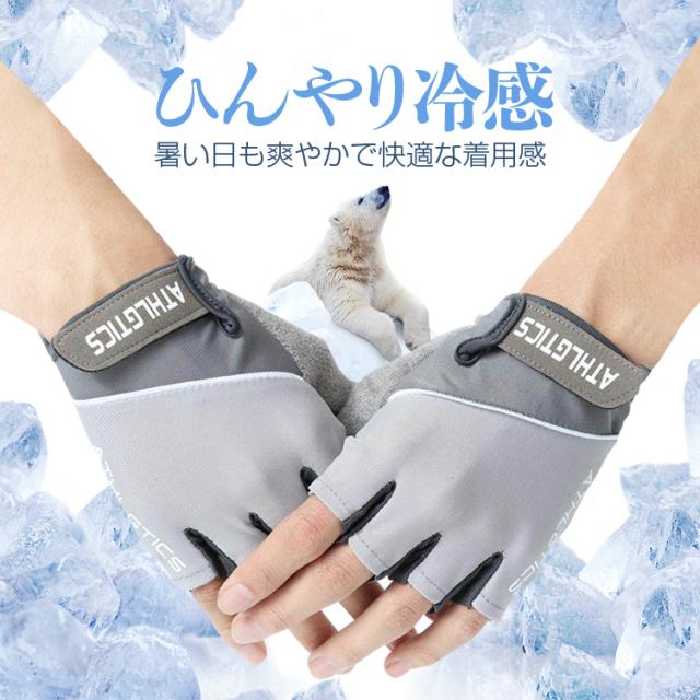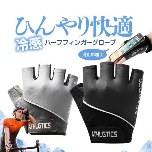 ひんやり接触冷感 ハーフフィンガーグローブ サイクルグローブ 滑り止め加工 クッションパッド 高伸縮 吸汗速乾 男女兼用 ATHQG077