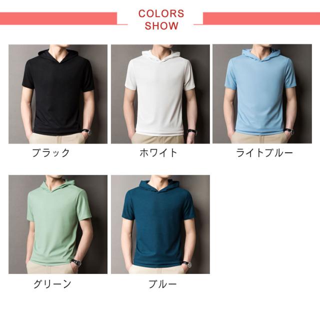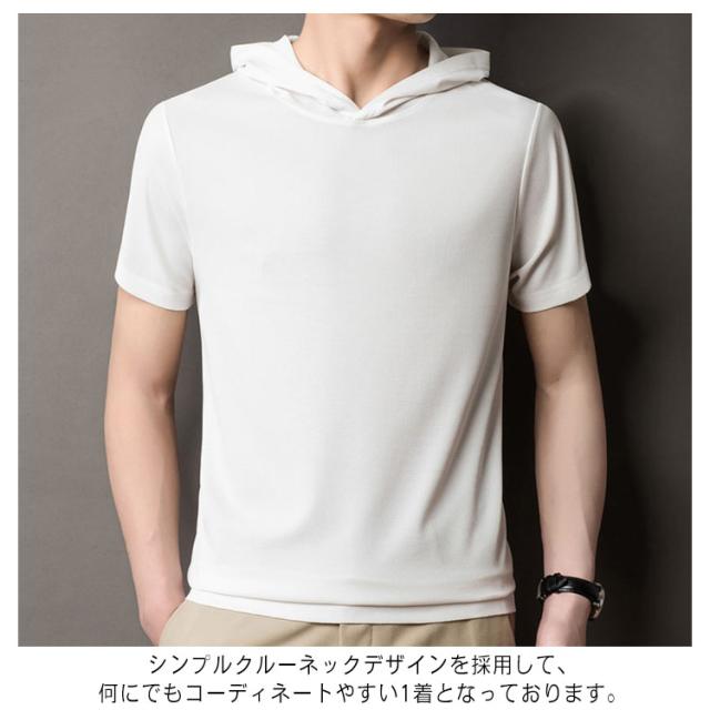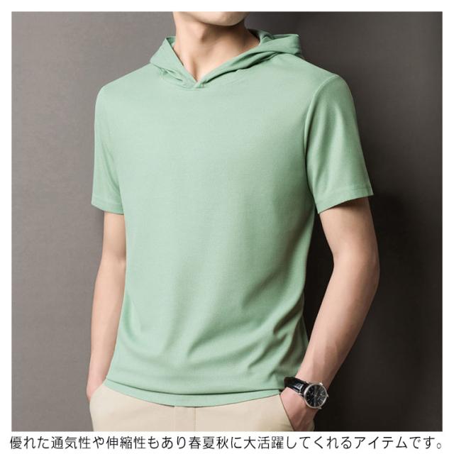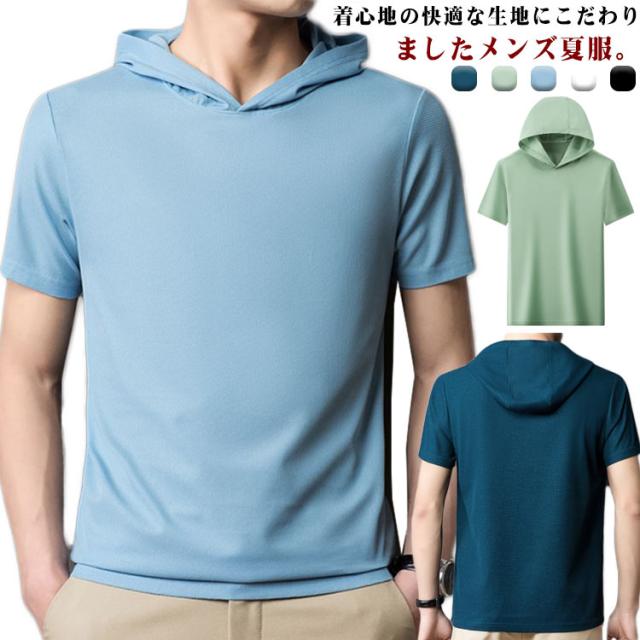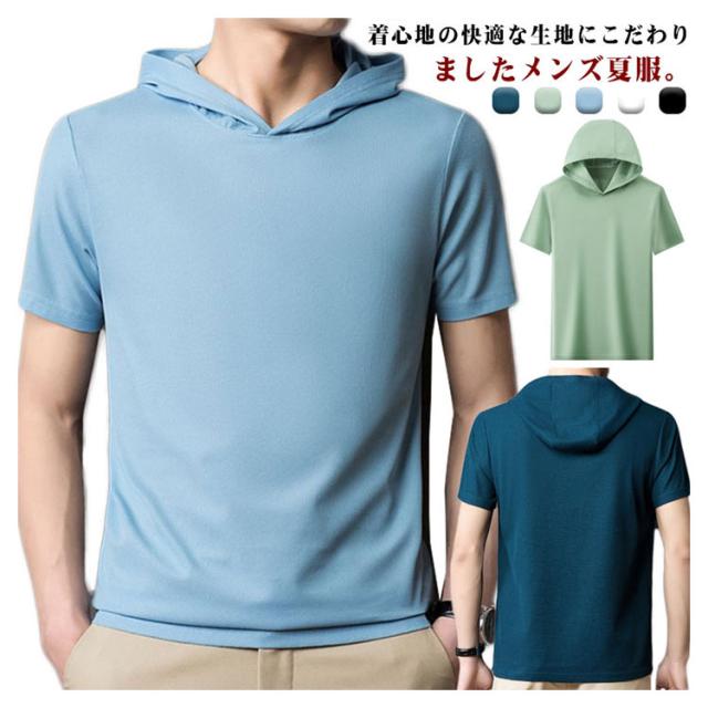 Tシャツ メンズ 半袖パーカー 夏物 フード付き 送料無料 プルオーバー 半袖Tシャツ 薄手 カットソー トップス シンプル おしゃれ ルームウェア 韓国 ファッション 通勤 オフィス