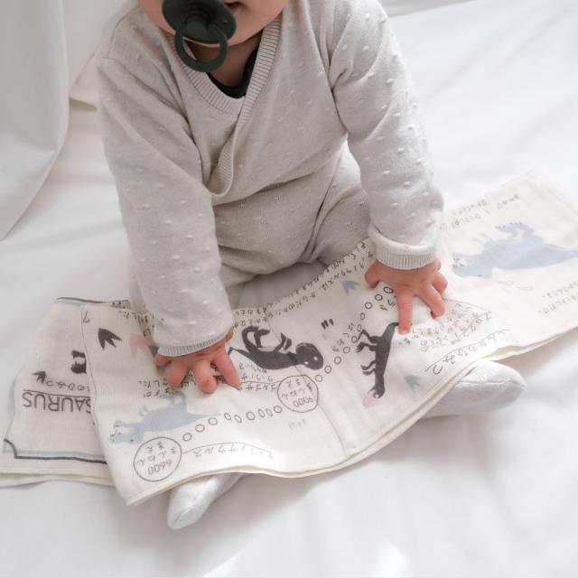 ページ番号に合わせて折りたたむと絵本に早変わりする、遊べて学べて使える絵本タオルです。新生児期は沐浴や体拭きとしてやさしく使え、成長するにつれてブランケットや絵本として活躍します。