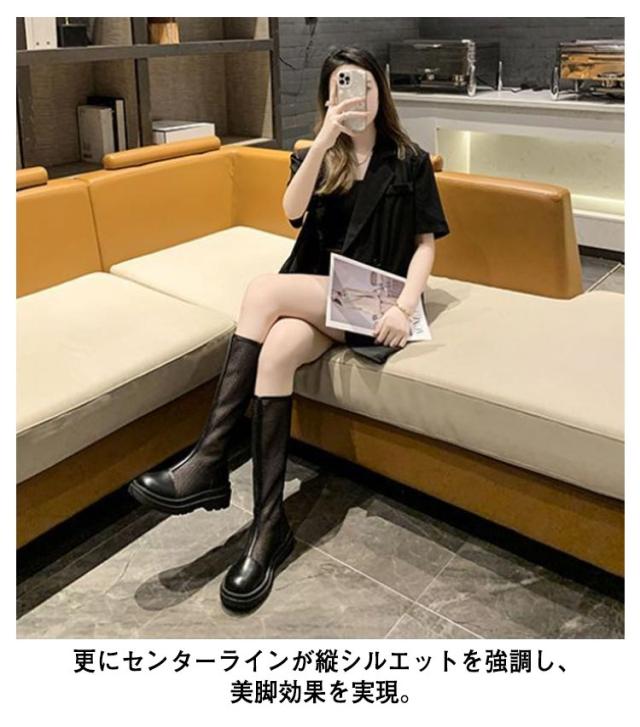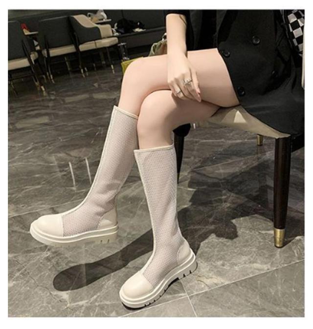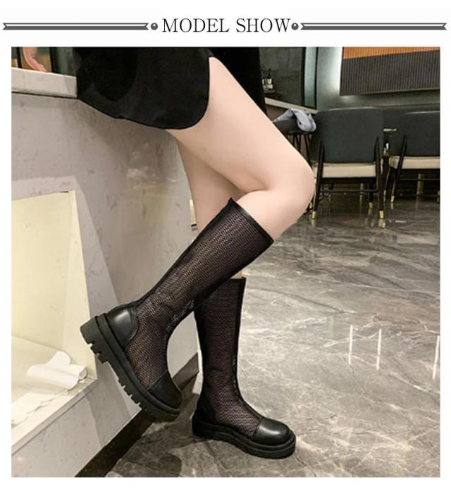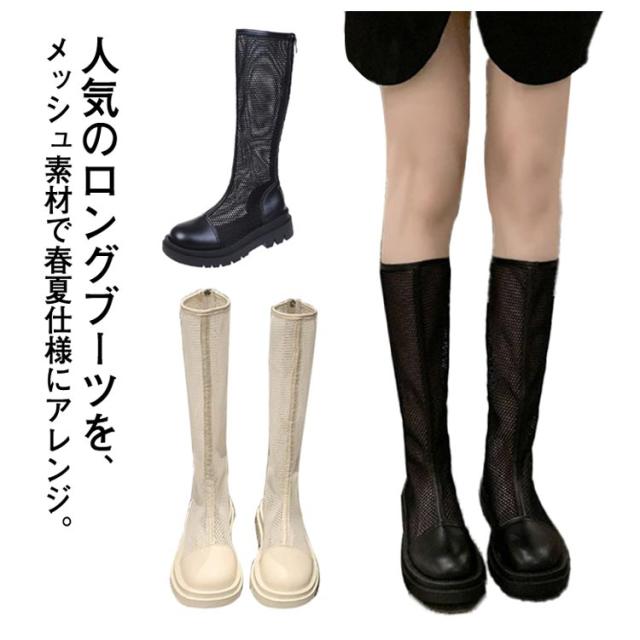 サマーブーツ メッシュブーツ ロングブーツ 紐なし バックジッパー センターラインメッシュブーツ 歩きやすい 履きやすい カジュアル きれいめ おしゃれ レディース 女性 全2色