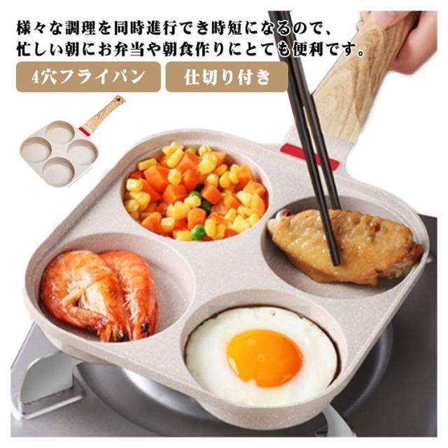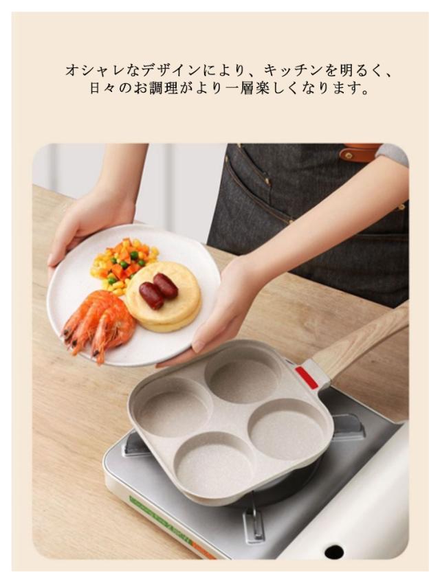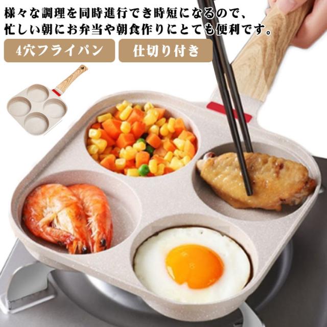 目玉焼きフライパン 仕切り付き 4穴フライパン 四角型 お弁当 作り 4つ穴円形フライパン マルチパン 卵焼きフライパン 朝食フライパン 焼きおにぎり 丸い 朝食 ステーキ お手入れ簡単