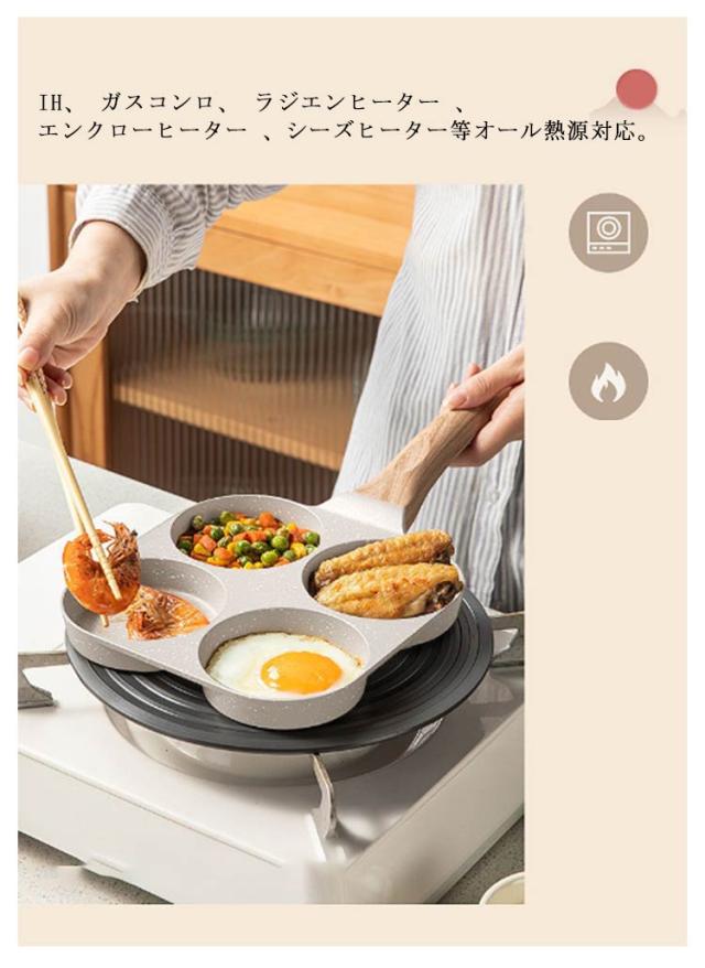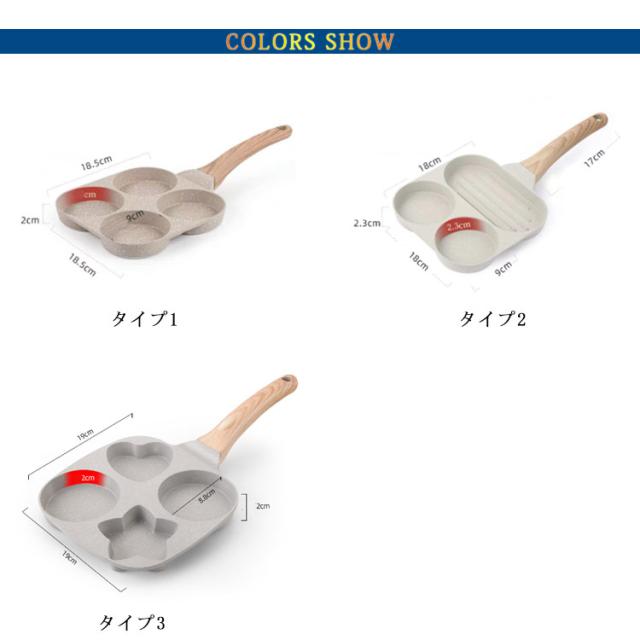 3タイプ 卵焼きフライパン 仕切り付き 目玉焼きフライパン 4穴フライパン 大判焼き器 4つ穴円形フライパン マルチパン 四角型 丸い お弁当 朝食フライパン 今川焼き 焼きおにぎり 作り お手入れ簡単 アルミ合金製 キャラ弁 型 パンケーキ