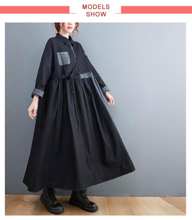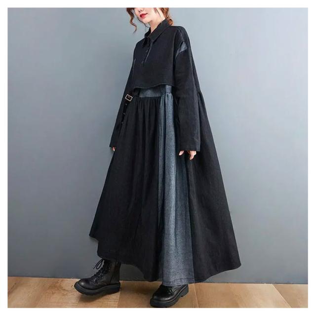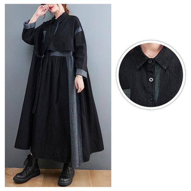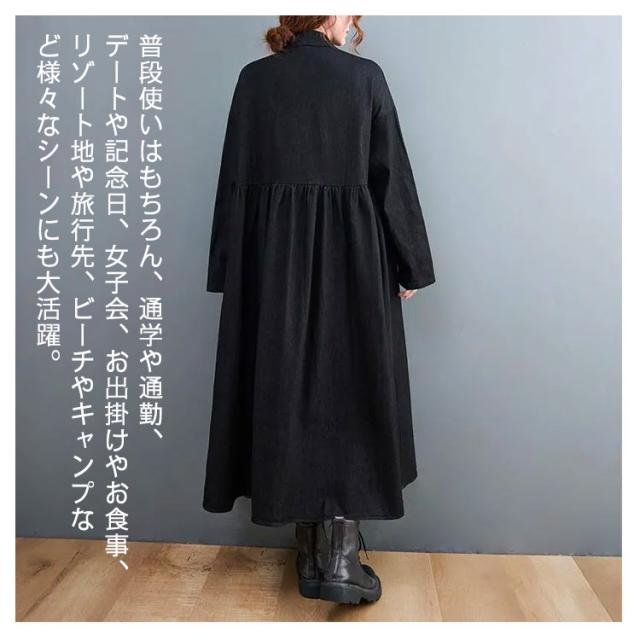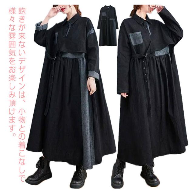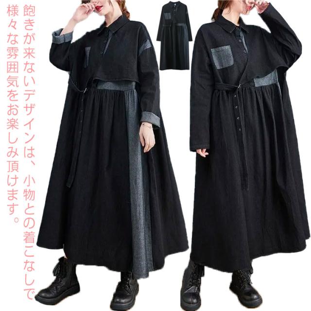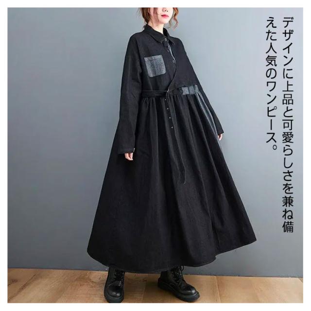 ワンピース レディース 春 デニムワンピース マキシワンピー 長袖 ロングワンピース プルオーバーマキシ丈 着痩せ 可愛い ゆったり 秋 20代 30代 40代 50代 送料無料