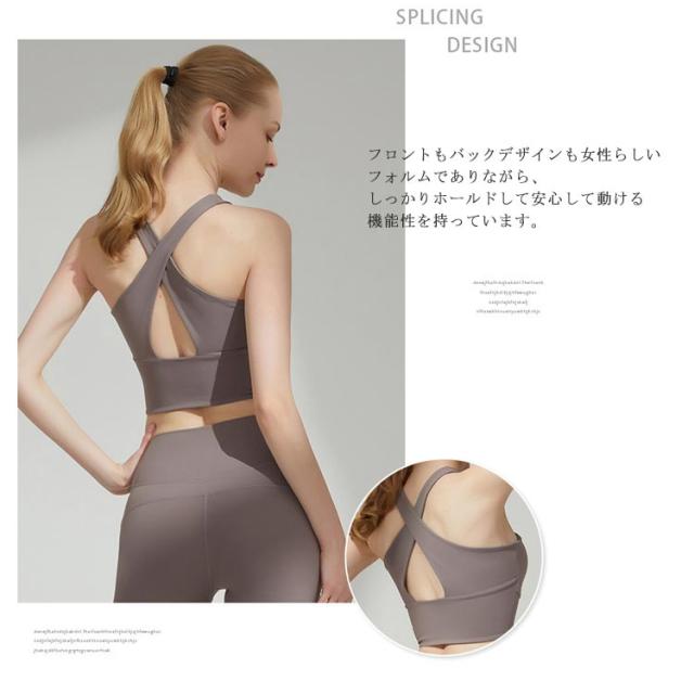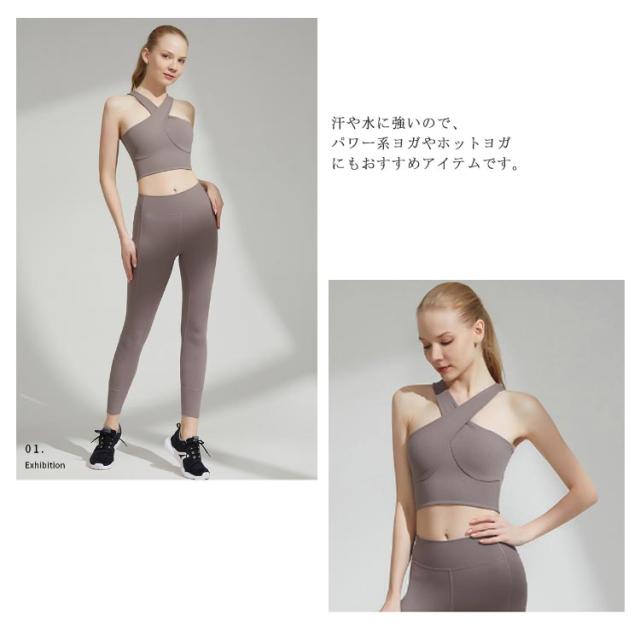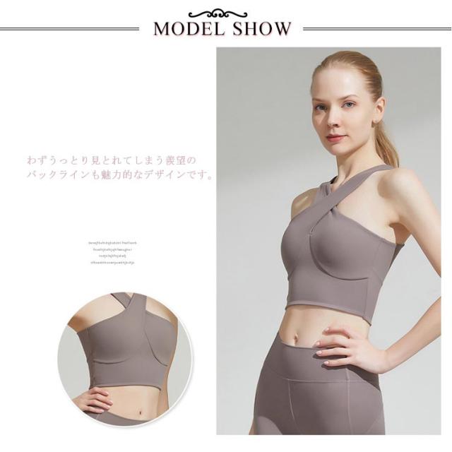 | 落ち着いたカラーでブラカップ付きタンクトップ。 わずうっとり見とれてしまう羨望のバックラインも魅力的なデザインです。 フロントもバックデザインも女性らしいフォルムでありながら、しっかりホールドして安心して動ける機能性を持っています。 吸水性・速乾性も抜群でイージーケアが可能なのも嬉しいポイント。 汗や水に強いので、パワー系ヨガやホットヨガにもおすすめアイテムです。 | |