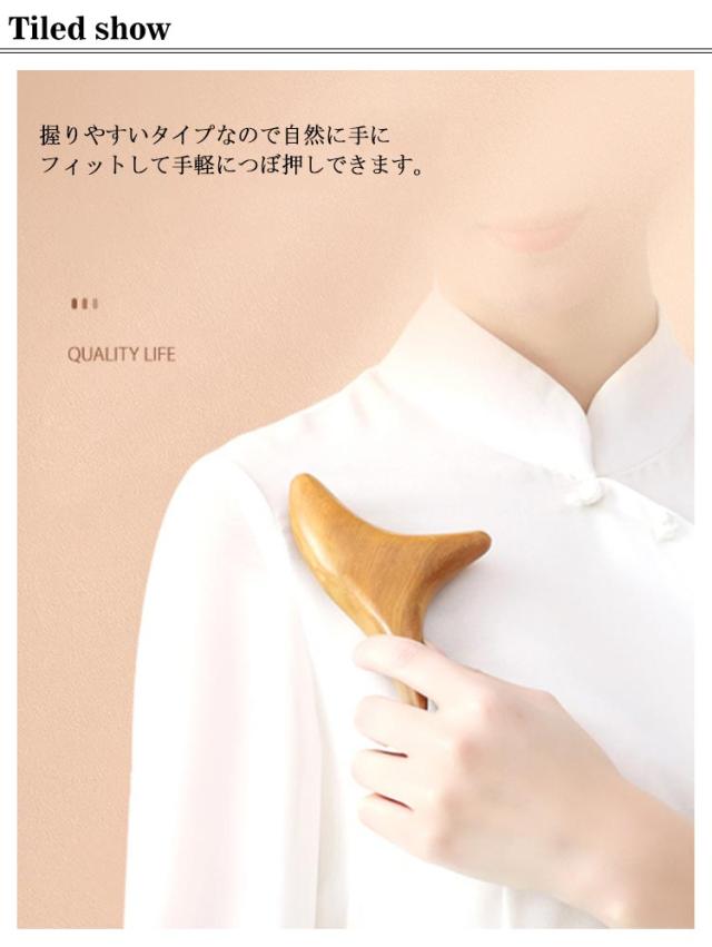 | 特殊な形だからこそいろんな部位を刺激できるつぼ押し棒です。 握りやすいタイプなので自然に手にフィットして手軽につぼ押しできます。 肩・首・背中・腰・ふくらはぎ・足裏等、あらゆる箇所のお悩みに対応。 先端のツボ押し部分だけでなく、曲線部分も使える!マッサージはより快適です。 手のひらサイズだから、いつでもどこでも、あらゆるツボを刺激!! | |