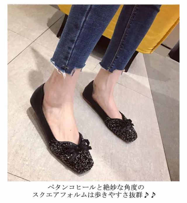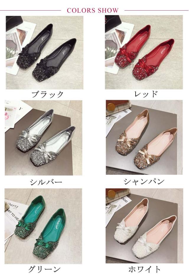 ぺたんこ パンプス キラキラ パンプス スパンコール ローヒール 痛くない Vカット オフィス バレエシューズ フラットパンプス スクエアトゥ 走れる ぺたんこ フラットシューズ 通勤 通学 柔らか おしゃれ 上品 リボン 結婚式 大きいサイズ 22.5-25.5cm