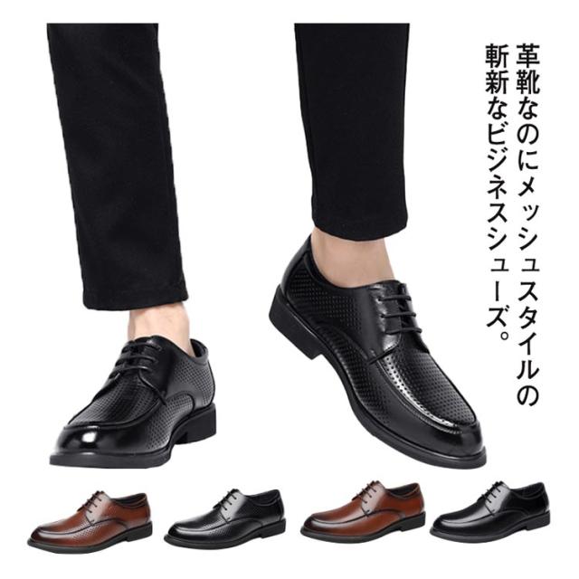 ビジネスシューズ 革靴 メンズ 通気性 蒸れない レースアップ フォーマル 履きやすい スーツ 営業 紳士靴 おしゃれ かっこいい シンプル スタイリッシュ メッシュタイプあり 選べる2タイプ 合皮 春 夏 秋 冬 全2色